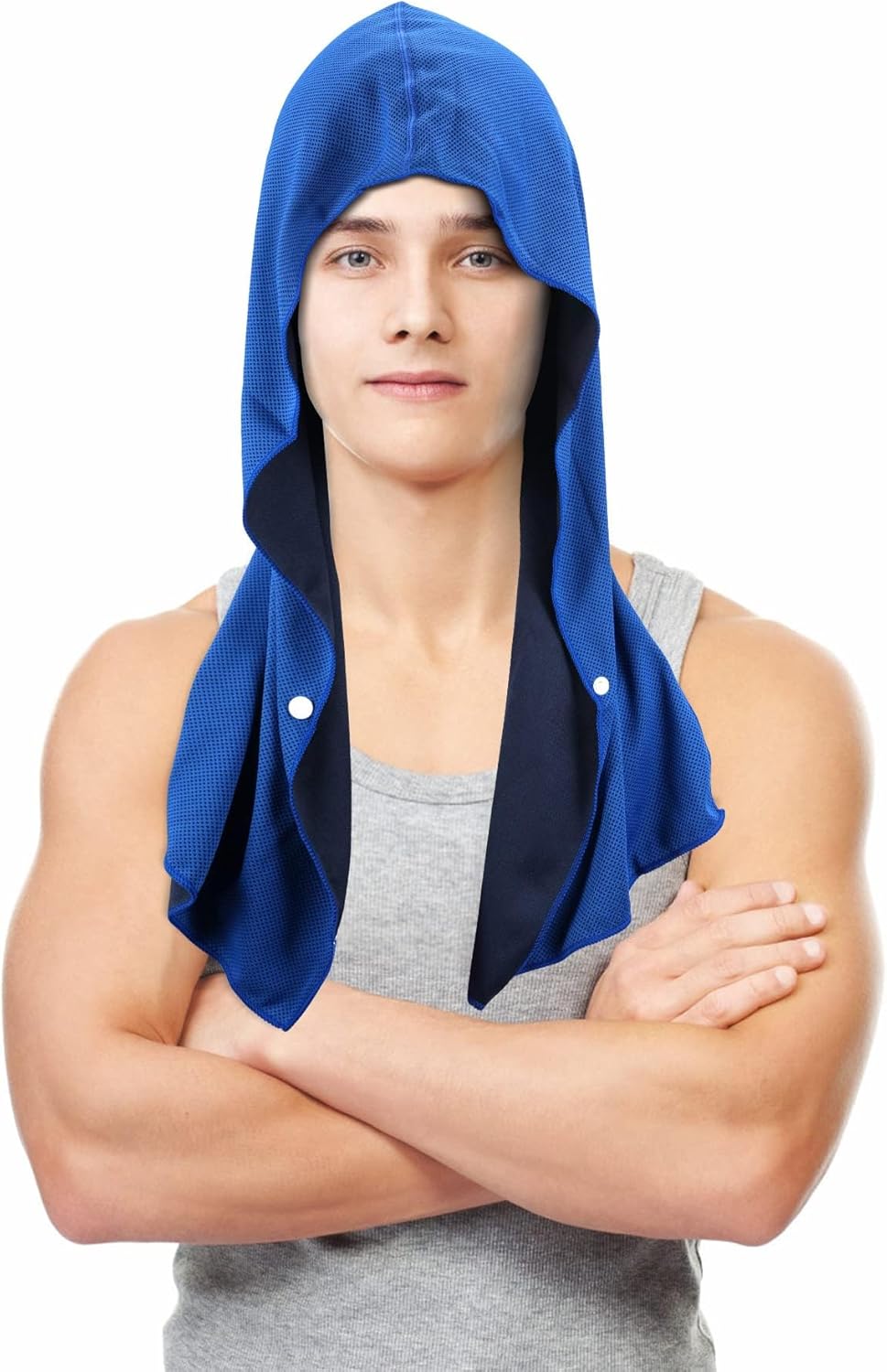 Sukeen Cooling Hoodie Towel for Men, Cooling Towels for Neck and Face UV Protection, Quick Drying Absorbent Sport Workout Camping Cycling Cooling Neck Wraps