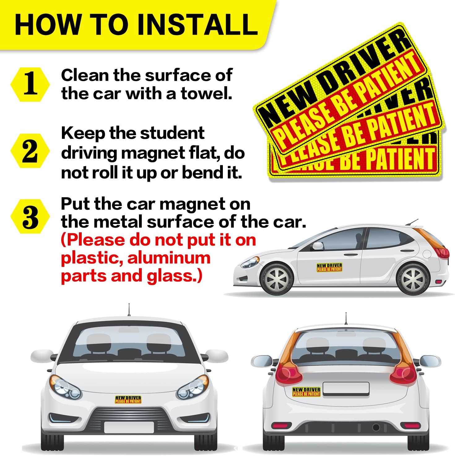 ➽STRONGEST MAGNETS: The student driver car magnet is made of thick strong magnet. Compared with other magnets, it is thicker, stronger, more durable and be patient student driver magnet can be more firmly attached to the surface of the car, we have tested for a long time at high speed, heavy rain and snow and never fall off. Tip: Magnets can only be attached to metal surfaces, not to plastic or aluminum parts.