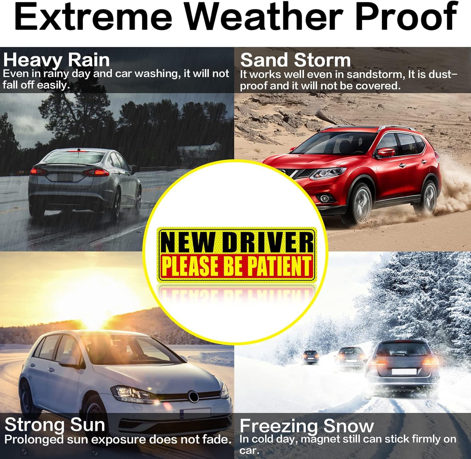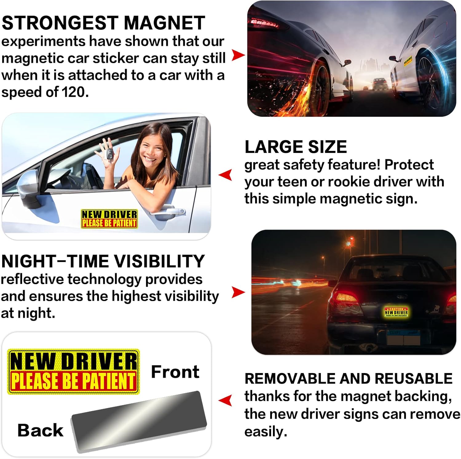 ➽HIGHLY REFLECTIVITY: New driver magnet for car is made of high quality waterproof and heat resistant materials through strong magnetic and highly reflective materials to maximize the amount of light reflected from the sign, attracting people’s attention and ensuring that the rookie driver car magnet is clearly visible even at night, in fog and rain, and other drivers can notice you from the side and back of the car. An excellent tool for teens with no driving experience.