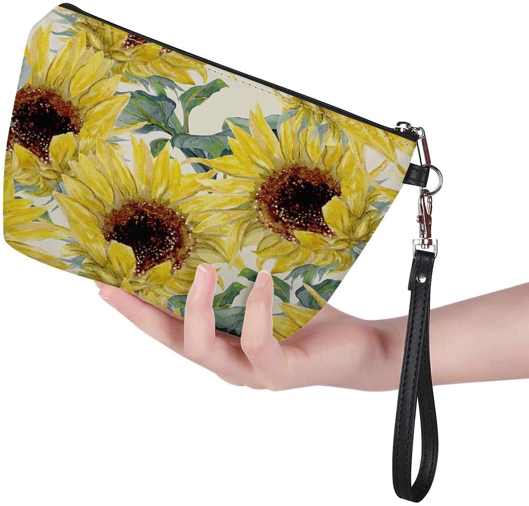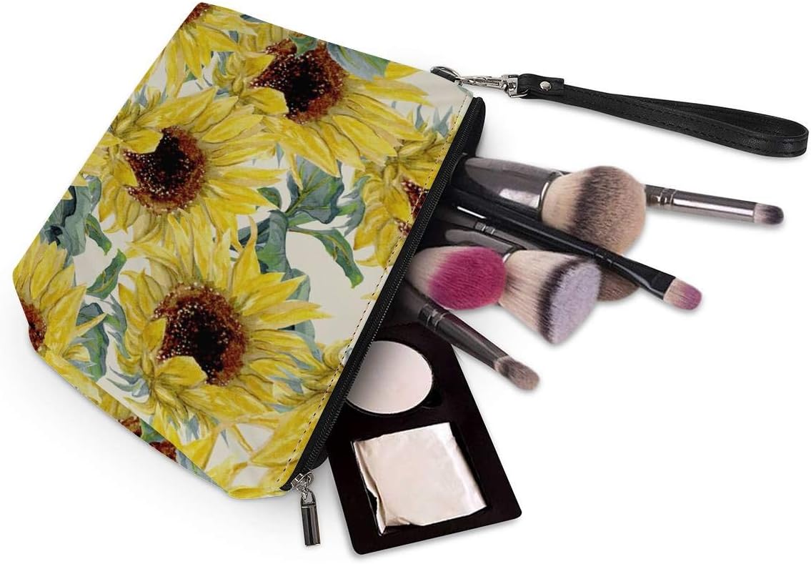 Sunflower Makeup Bag,Cosmetic Bag with Zipper,Pu Toiletry/Travel Bag for Women,Storage Bag for Brushes Jewelry Accessories Collection