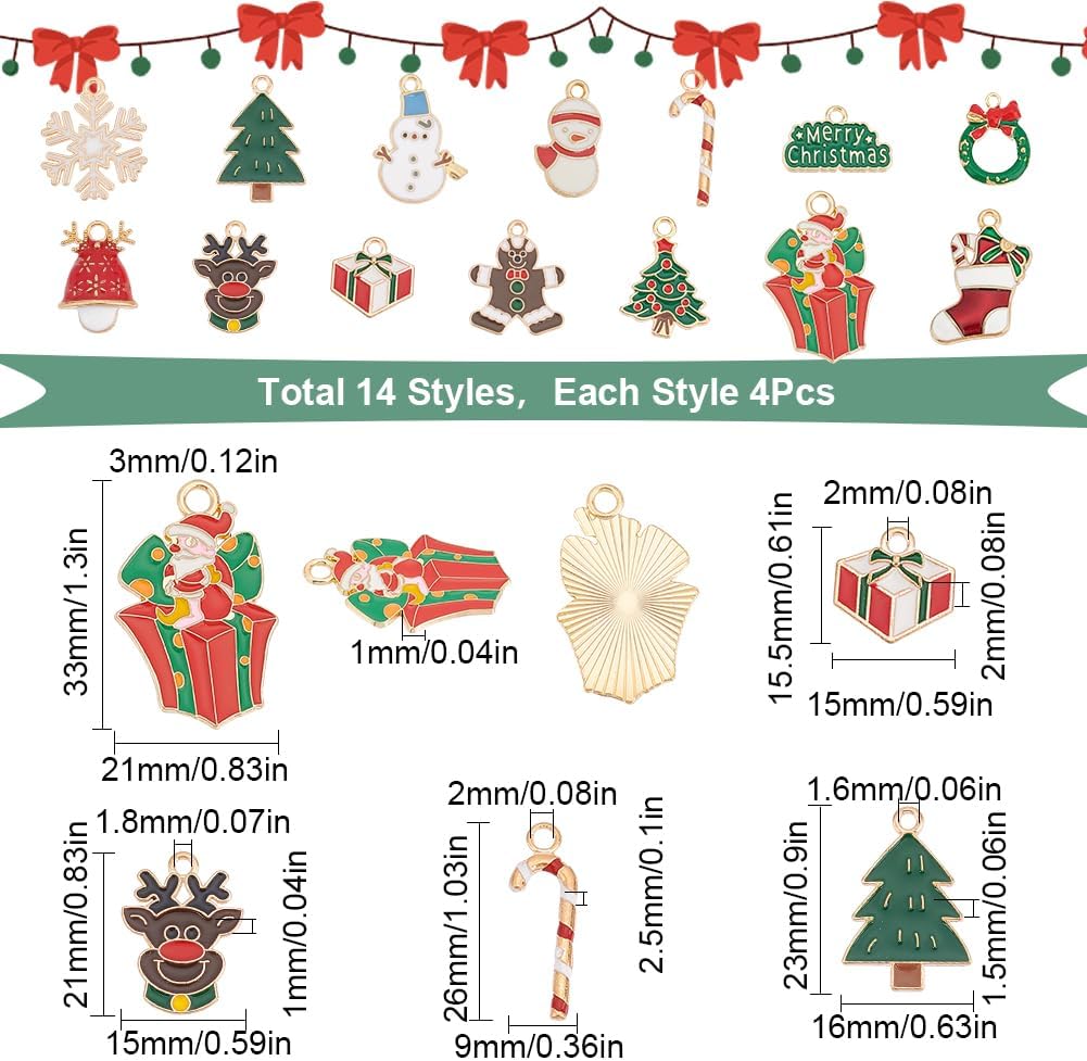 SUNNYCLUE 1 Box 56Pcs 16 Styles Christmas Charms Bulk Winter Snowflake Snowman Tree Candy Cane Gingerbread Man Enamel Charms for Jewelry Making Charms Findings DIY Necklace Earring Adults Craft