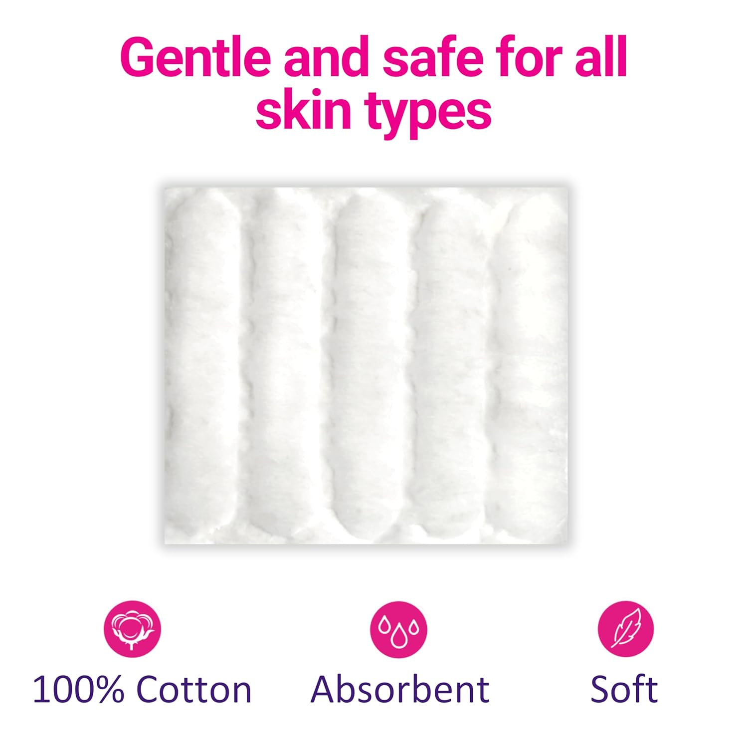 SOFT AND GENTLE: Multi-layered 100% pure cotton squares are quilted for strength and are gentle and safe for all skin types