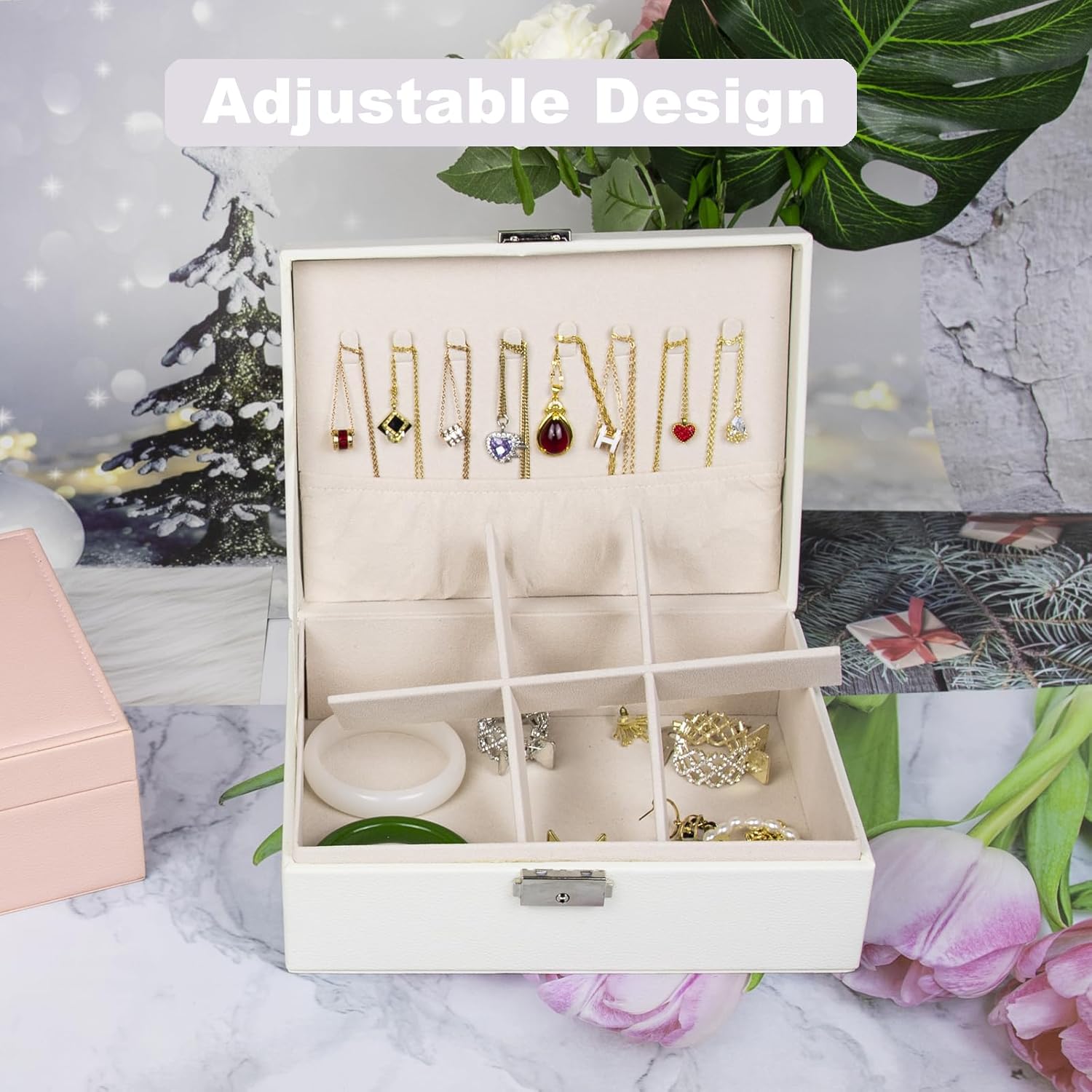 【2 Layer Large Jewelry Storage Case】 — Jewelry box organizer can better classify jewelry, no more messy, damaged or misplaced. The jewelry storage case jewelry box for girls can be placed on your dresser, nightstand, bathroom or vanity to make your room looking more neatly