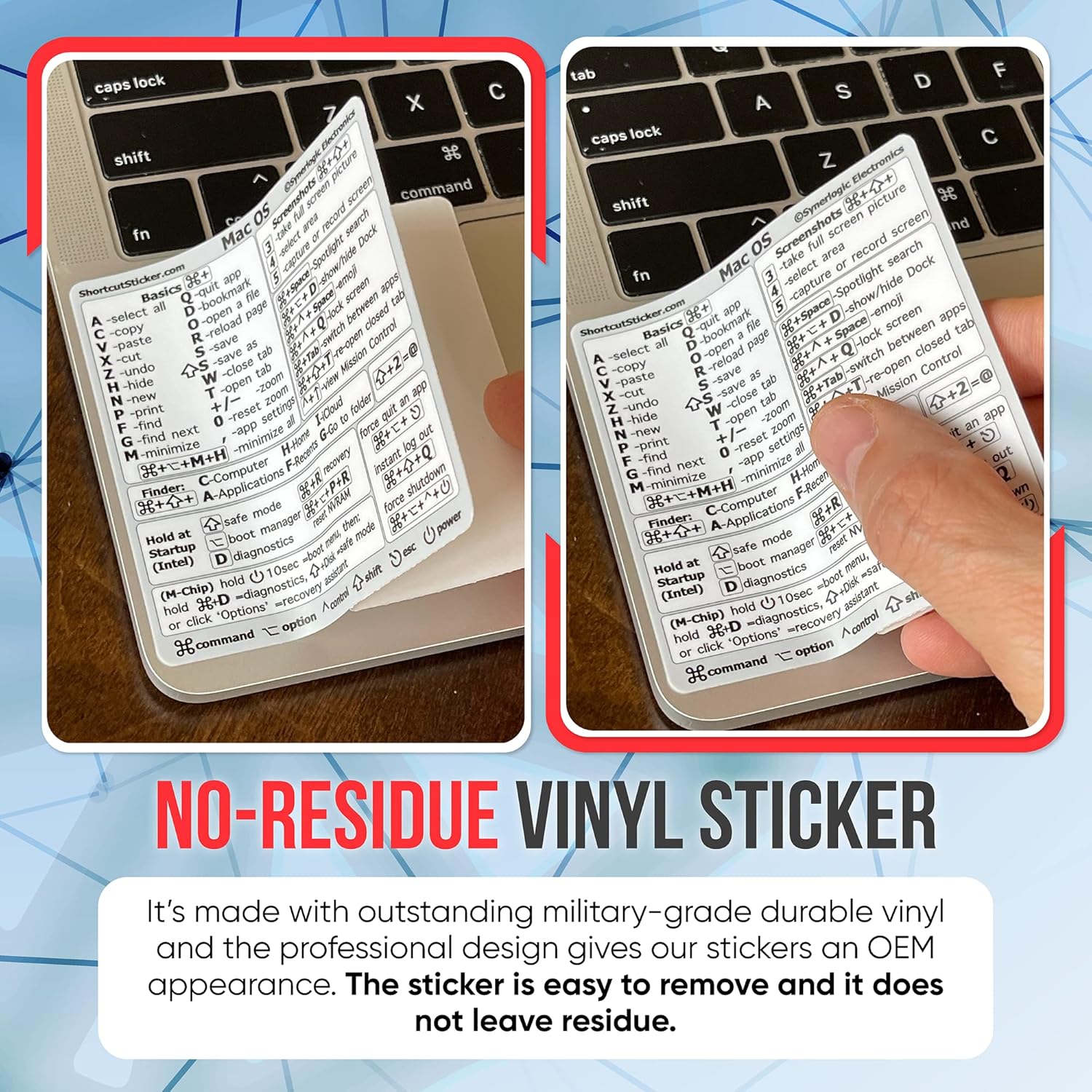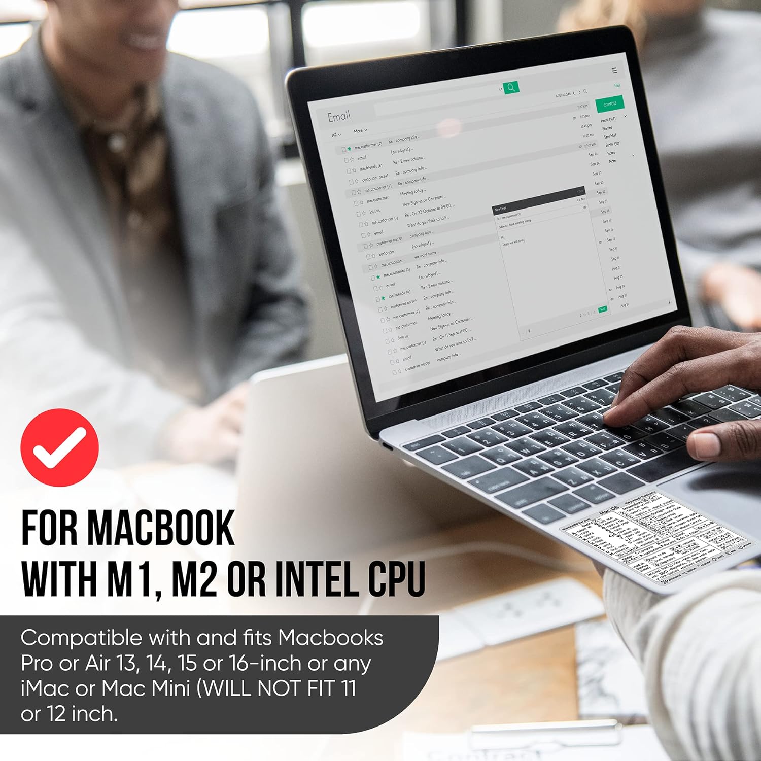 💻 ✔️ FOR Macbook with M1, M2, M3, or Intel CPU – Compatible with and fits Macbooks Pro or Air 13, 14, 15, or 16-inch or any iMac or Mac Mini (WILL NOT FIT 11 or 12 inch – we have a smaller sticker for those). Shortcuts work for any MacOS 11: Sonoma, Ventura, Monterey, Big Sur, as well as any Mac OS 10: Catalina, Mojave, High Sierra, El Capitan, etc. 🇺🇸PROUDLY MADE IN USA🇺🇸