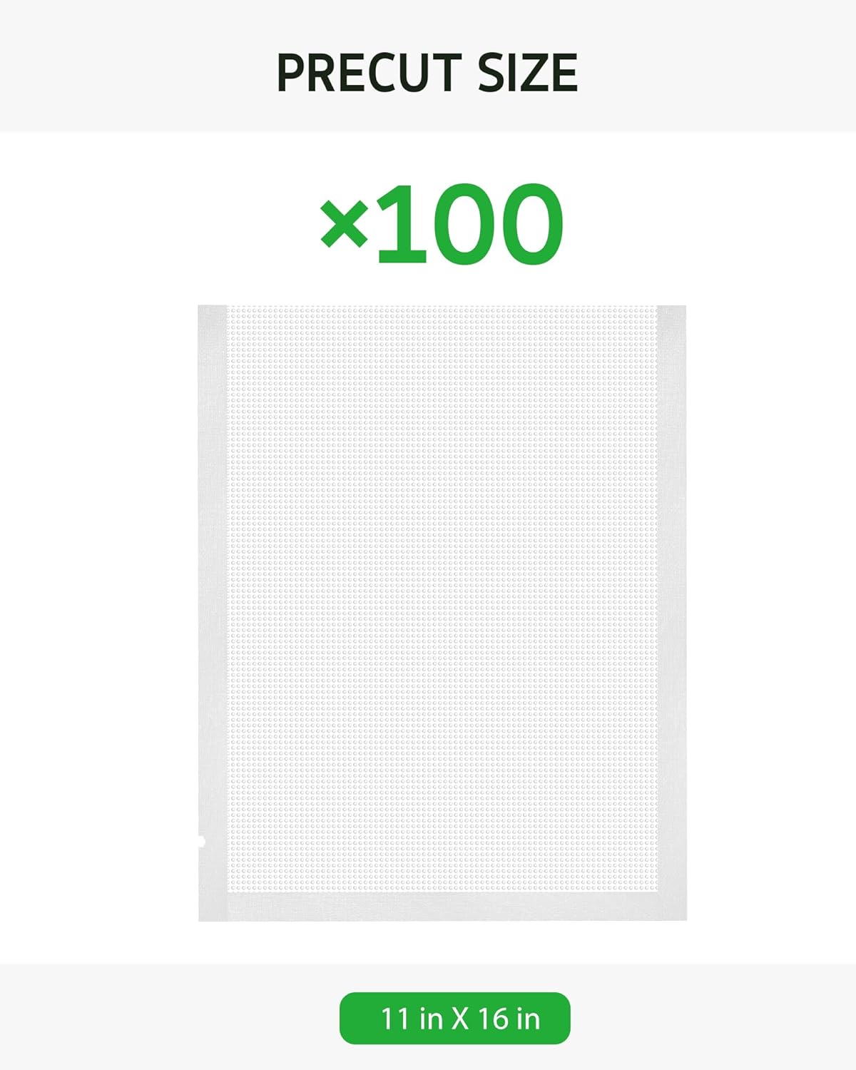 Syntus Vacuum Sealer Bags for Food, 100 Count Gallon 11″ x 16″ Commercial Grade PreCut Bag, BPA Free Food Vac Bags for Storage, Meal Prep or Sous Vide