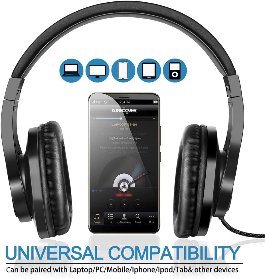 T3 Wired Over Ear Headphones – Stereo Sound Headphones with Tangle Free Cord Bass Comfortable Headphones, Lightweight Portable for Smartphone Tablet Computer PC Laptop Notebook