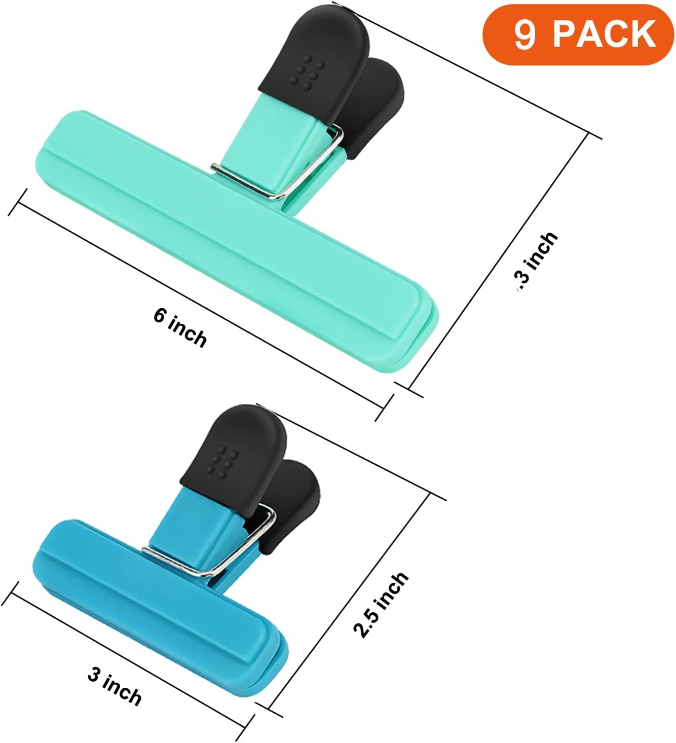 TACGEA Chip Clips, 9 Pack Food Clips, Bag Clips for Food Storage with Air Tight Seal Grip (3 Large and 6 Small)
