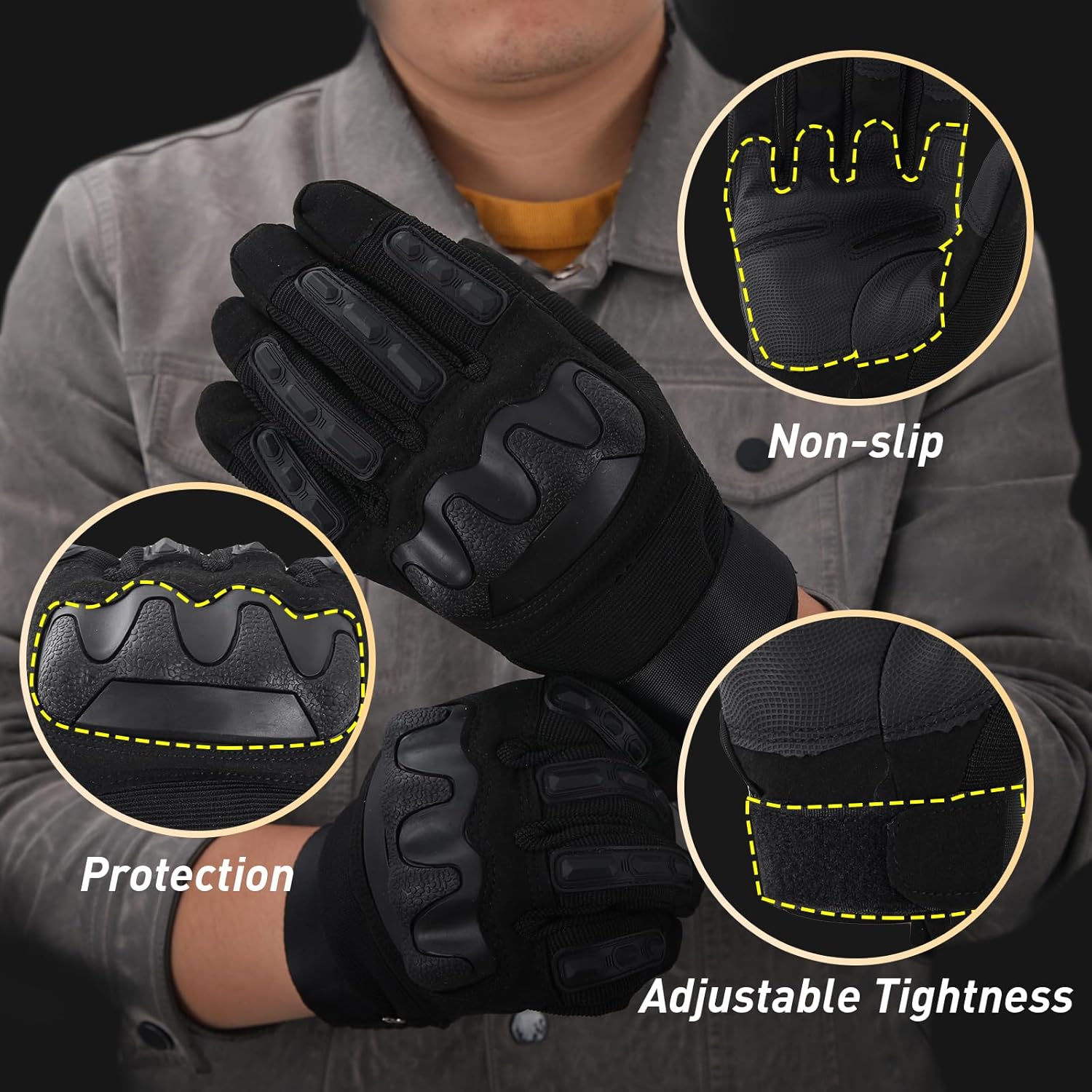 Enhanced Knuckle Protection: Our tactical gloves are equipped with tough hard plastic knuckle protection, effectively absorbing impact and reducing vibration, ensuring your hands are shielded from injuries during activities like cycling and outdoor sports.