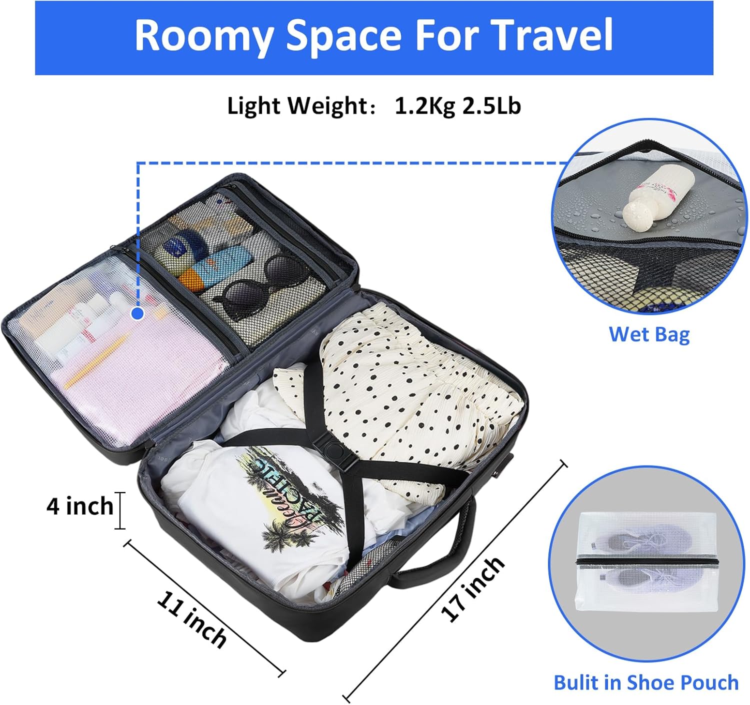 Be Handbag or Backpack: The mens travel backpack for airplane designed with padded adjustable shoulder strapsand 2 padded handles make it easy to transform this weekender backpack from hand bag to backpack. Luggage Strap provides a more flexible carrying experience. Two padded grab handles are set on top and side of the personal item travel backpack. Note: when used as a handbag, you can thread the shoulder strap through the luggage strap for convenience.