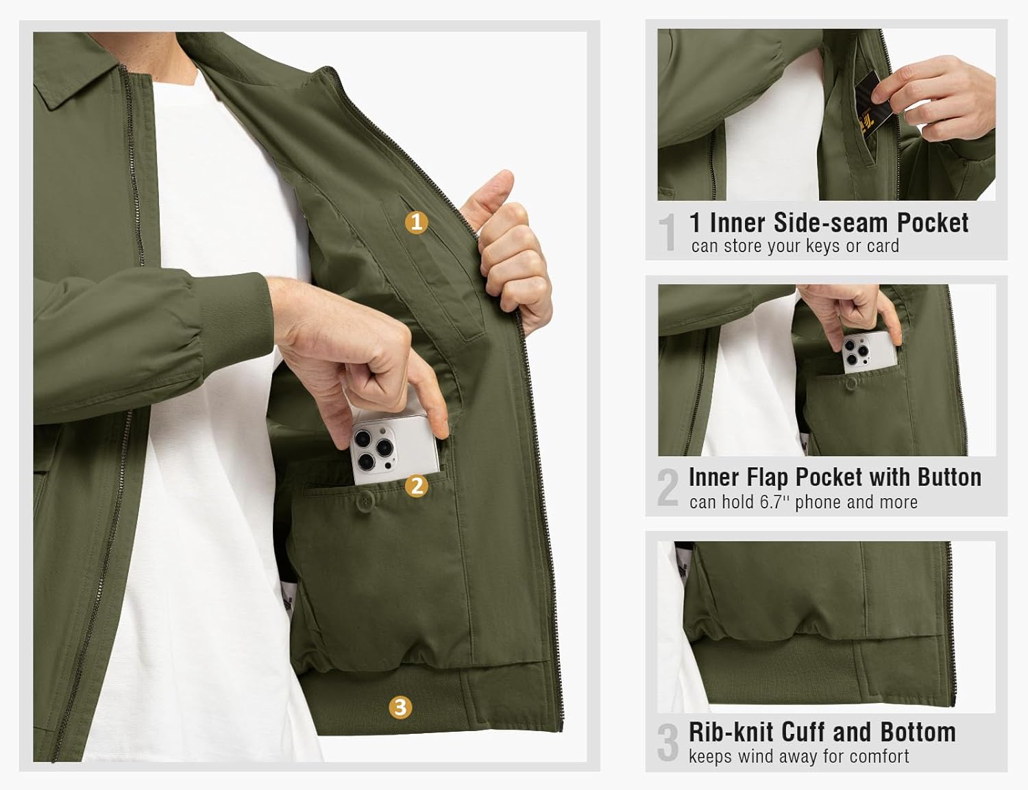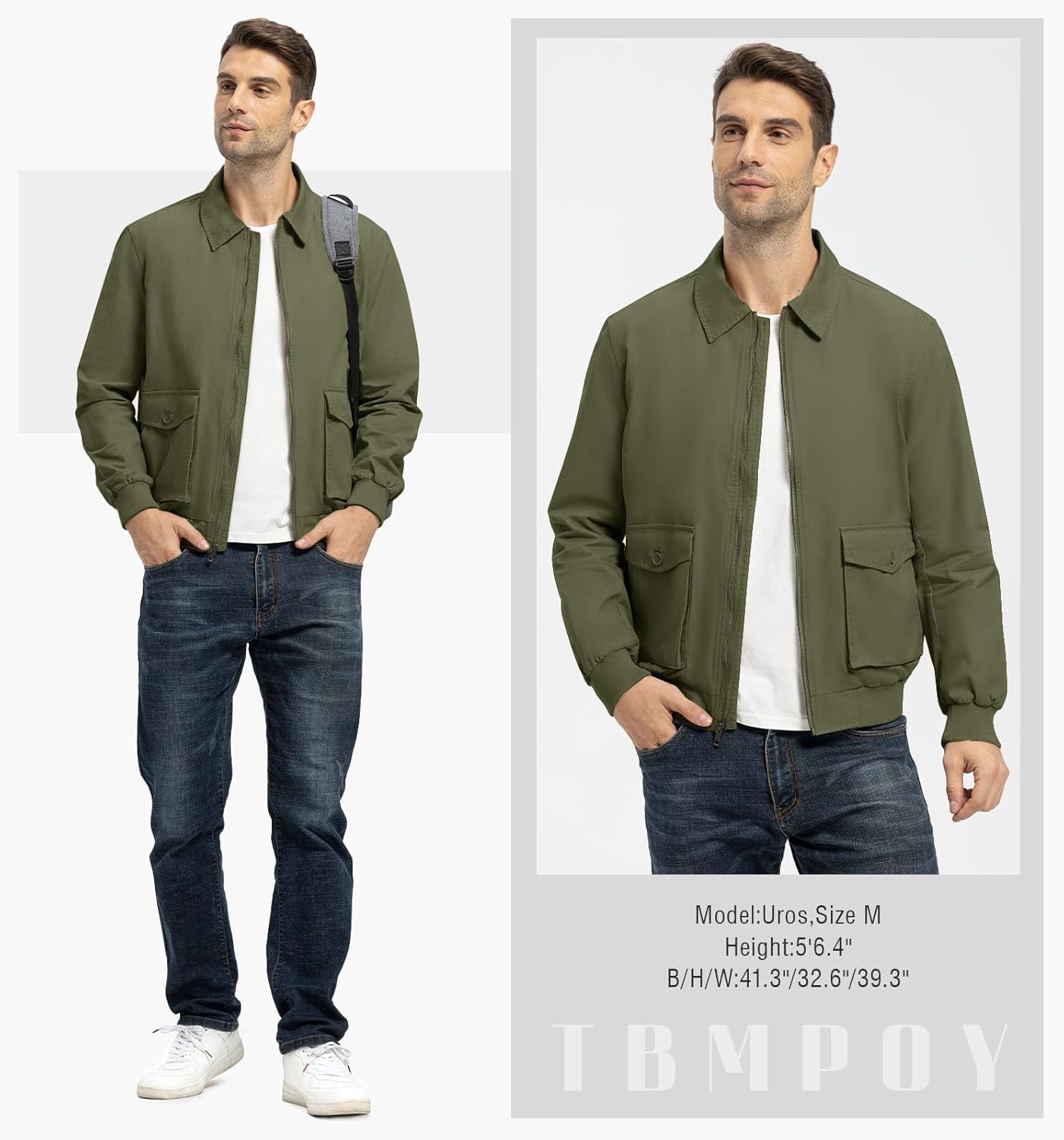 TBMPOY Men’s Work Jackets Cotton Winter Quilted Jackets Fall Full Zip Coats Casual Warm Windbreaker Work Outwear