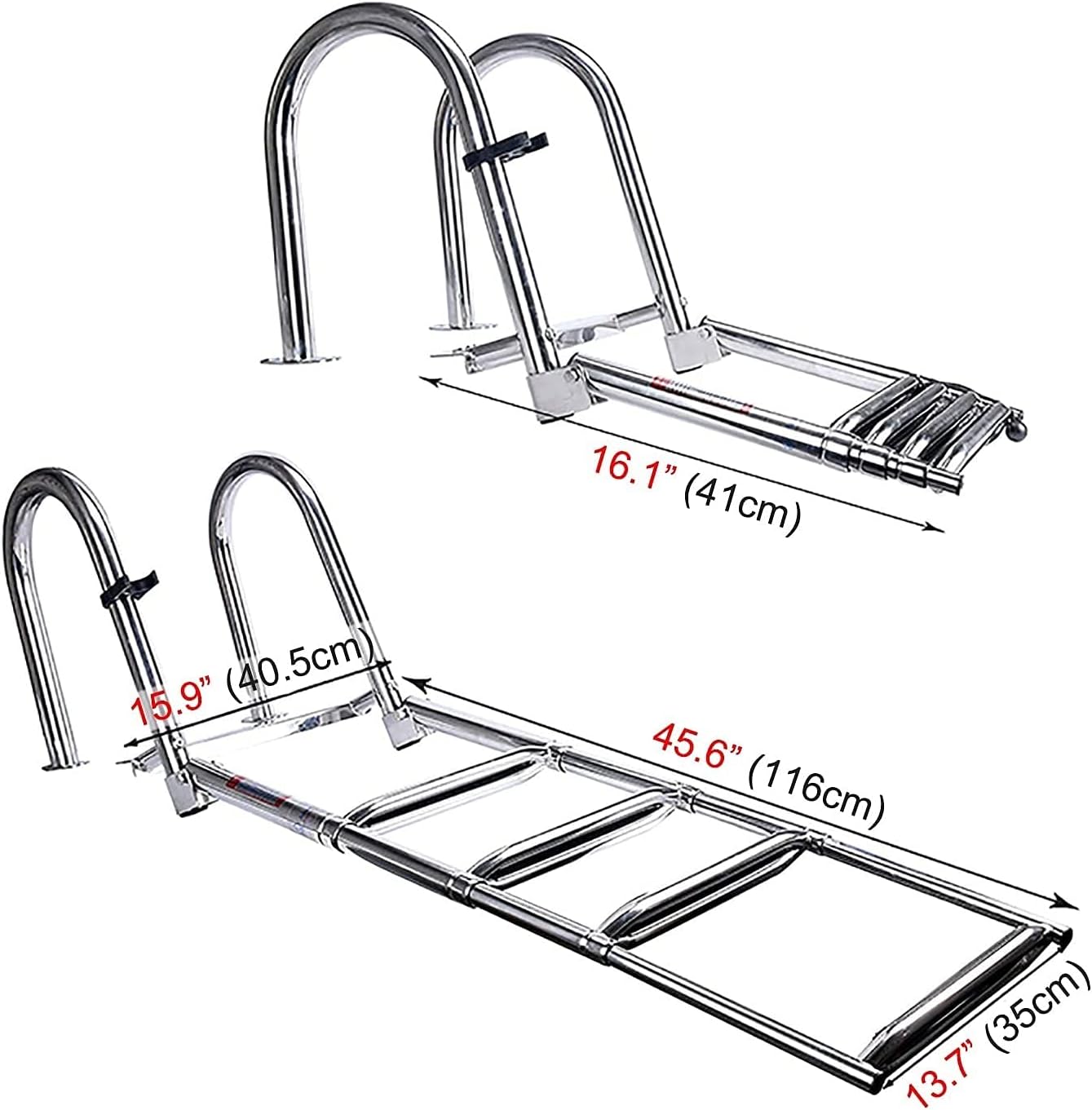 【Easy to Assemble & Use】Installation is very easy, simply bolt the ladder to a horizontal platform and you are ready to use it; In addition to boats, it’s also perfect for most swimming pools, docks, pontoons, deck, wood raft and more!