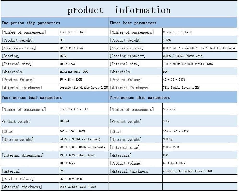 It is ideal for leisure cruises or fishing on lakes and calm rivers. It has your stability. The inflatable boat can accommodate 3 people. You can choose the size according to your needs. It has abrasion resistance, impact resistance and sunlight resistance, and is not affected by gasoline, oil or salt water. If you have questions, please ask our customer service and we will answer them for you!