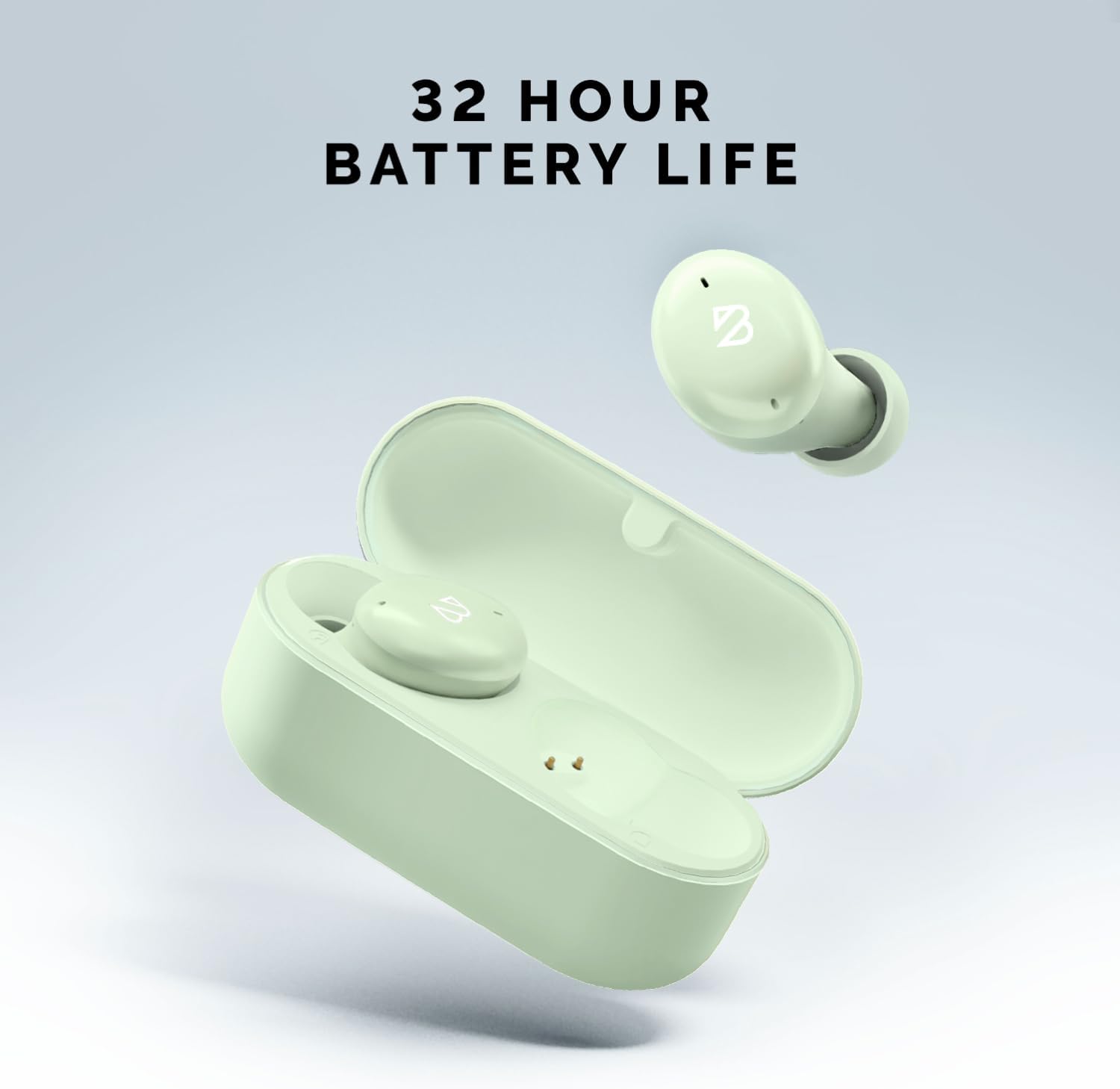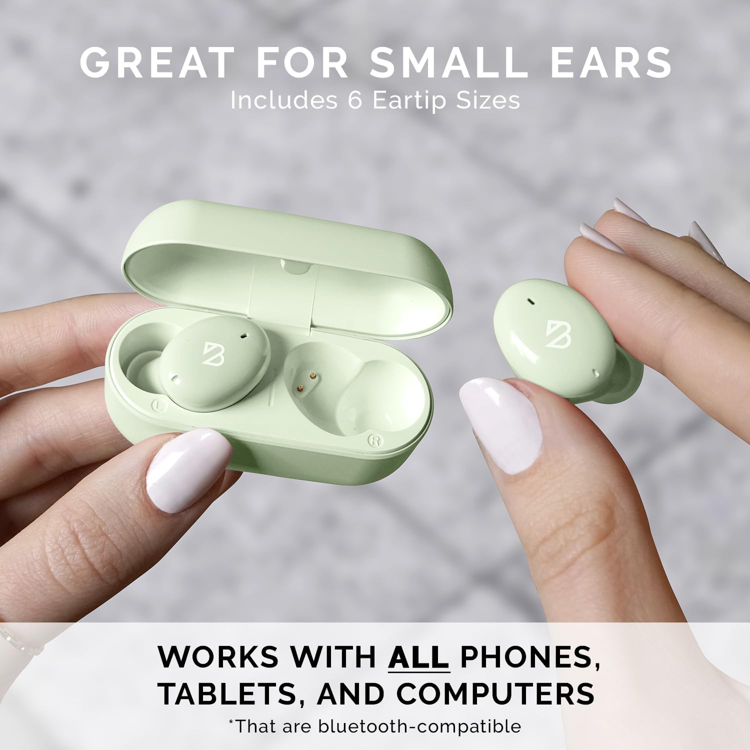 Tempo 30 Wireless Earbuds for Small Ears with Premium Sound, Bluetooth Green Earbuds for Women and Men, Cute Earphones for Small Ear Canals with Mic, IPX7 Sweatproof, Long Battery, Loud Bass