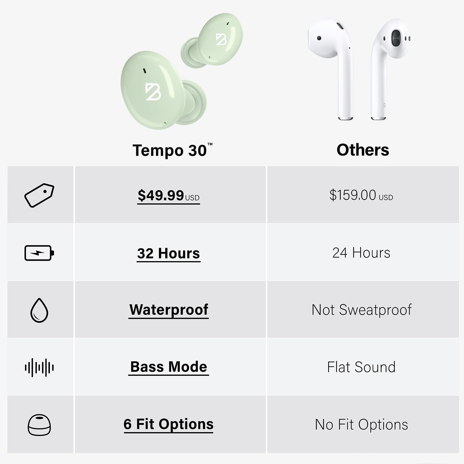 Great For Small and Large Ears – The Tempo 30 earbuds comes with 6 size options, ranging from Extra-Small to XXL. We have ensured that even the smallest ears can find a comfortable fit.