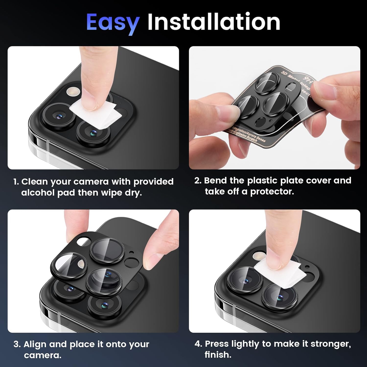 HIGHLY CLEAR- The 9H tempered glass covering the lens is highly transparent with 99.99% optical-grade light transmittance. No influence to Apple Phone 15 Pro/15 Pro Max original amazing image performance. No fog, No blue light is caused when using flash.