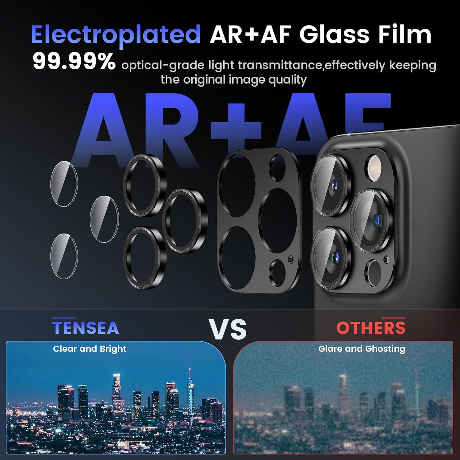 COMPATIBILITY- Tensea rear camera protector made by 9H tempered glass and aluminum alloy is designed for iPhone 15 Pro 6.1 inch/iPhone 15 Pro Max 6.7 inch with THREE camera lens. The protector de camara full covers your phone lens. No bubbles, Case friendly, leave no residue after removed. [NOTE: Not fit for iPhone 15/iPhone 15 Plus with two camera lens]