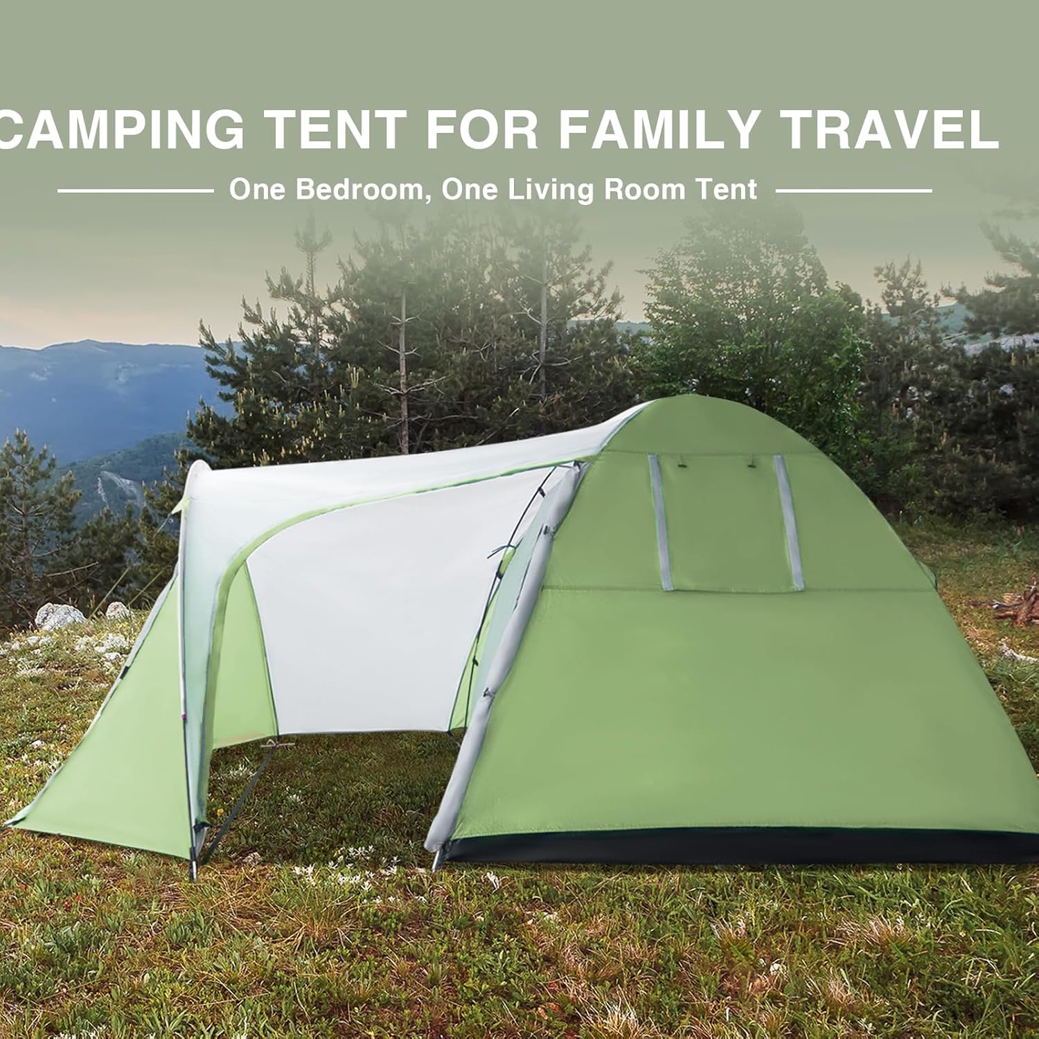 【4-Person Tent with One-Room, One-Hall Design】: This spacious 4 person tent comfortably accommodates a group or family, ensuring distinct areas for rest and activity with enhanced privacy, ideal for tent camping.