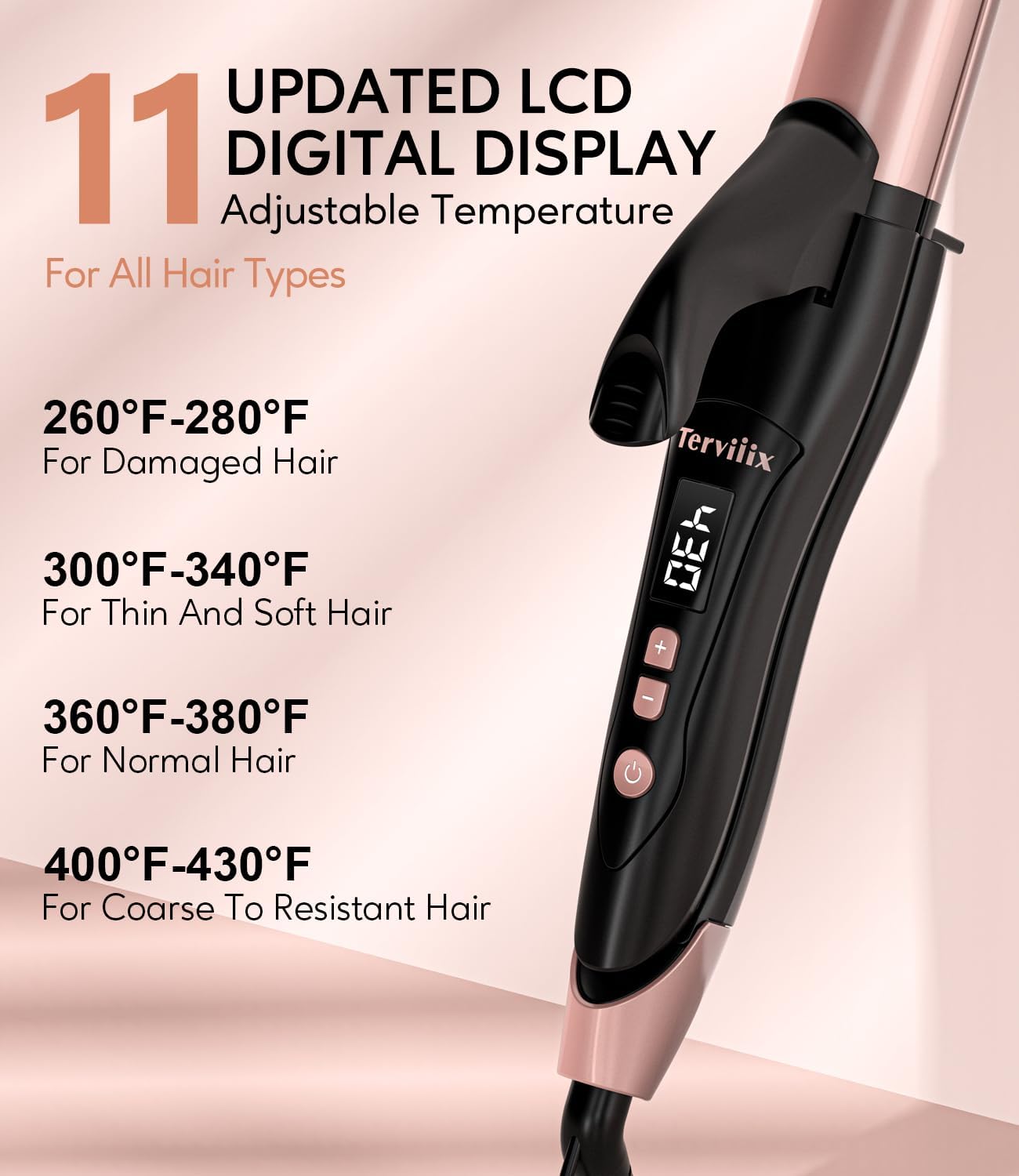 Various Temperature Options: The LCD screen offers 11 heat settings from 260℉ to 430℉, catering to all hair types for different styling needs.