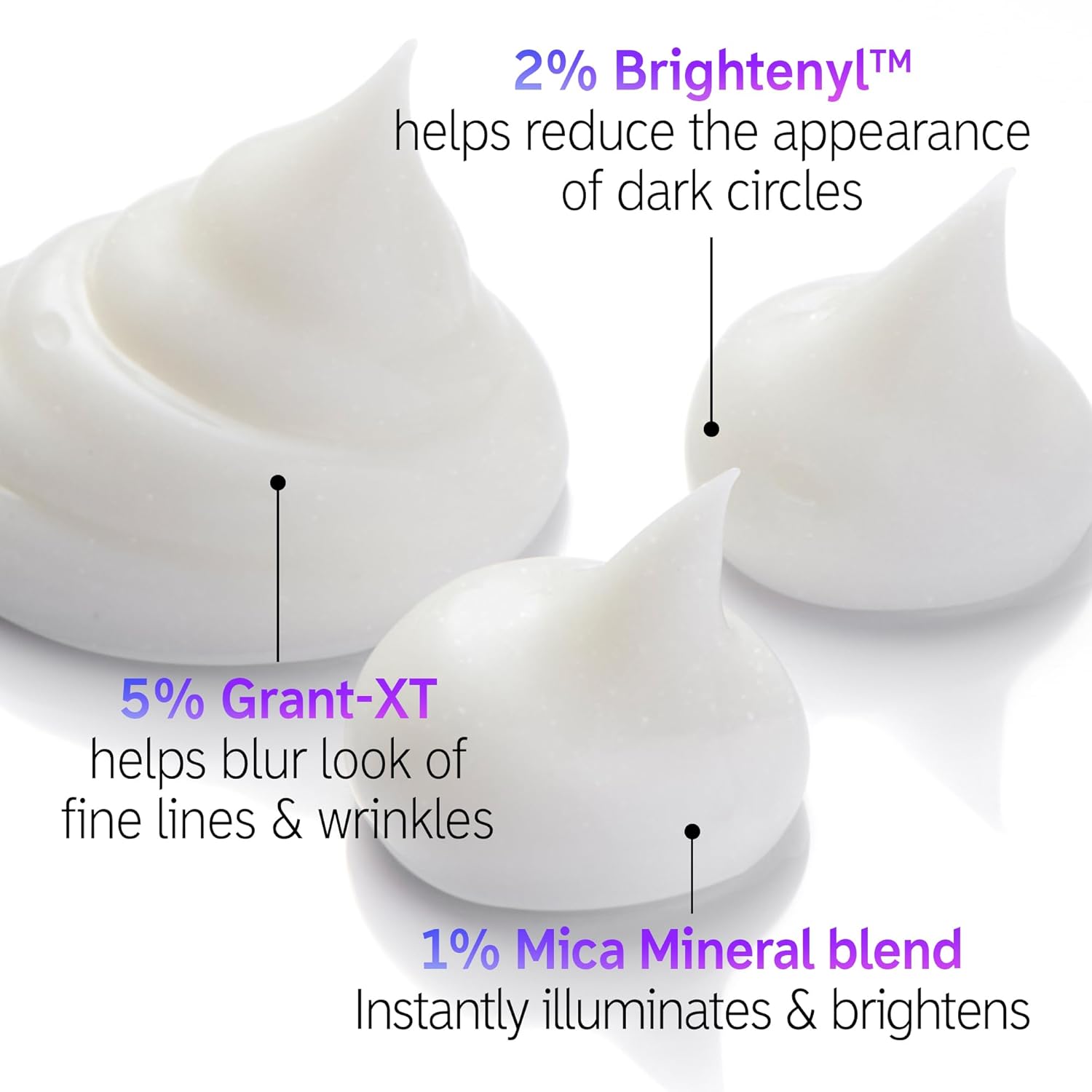 Powerful Ingredients, Real Results. Brightenyl and Mica Mineral Blend illuminates the eye area over time and evens skin tone while Grant-XT instantly blurs the look of fine lines.
