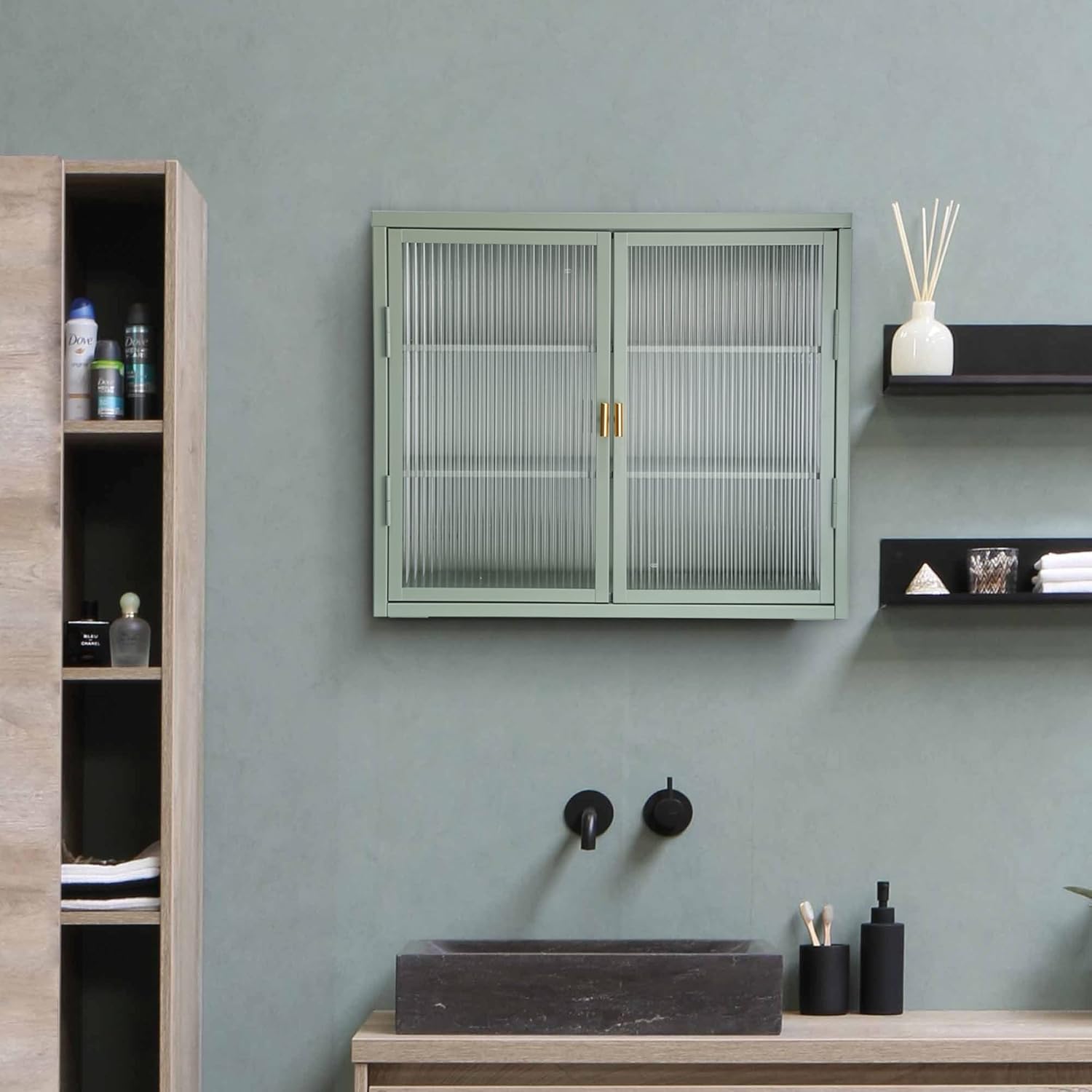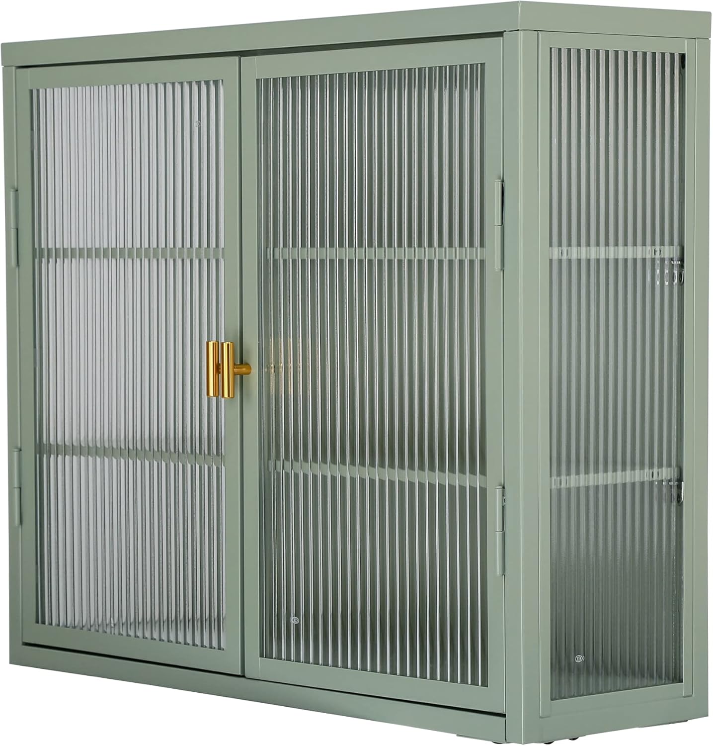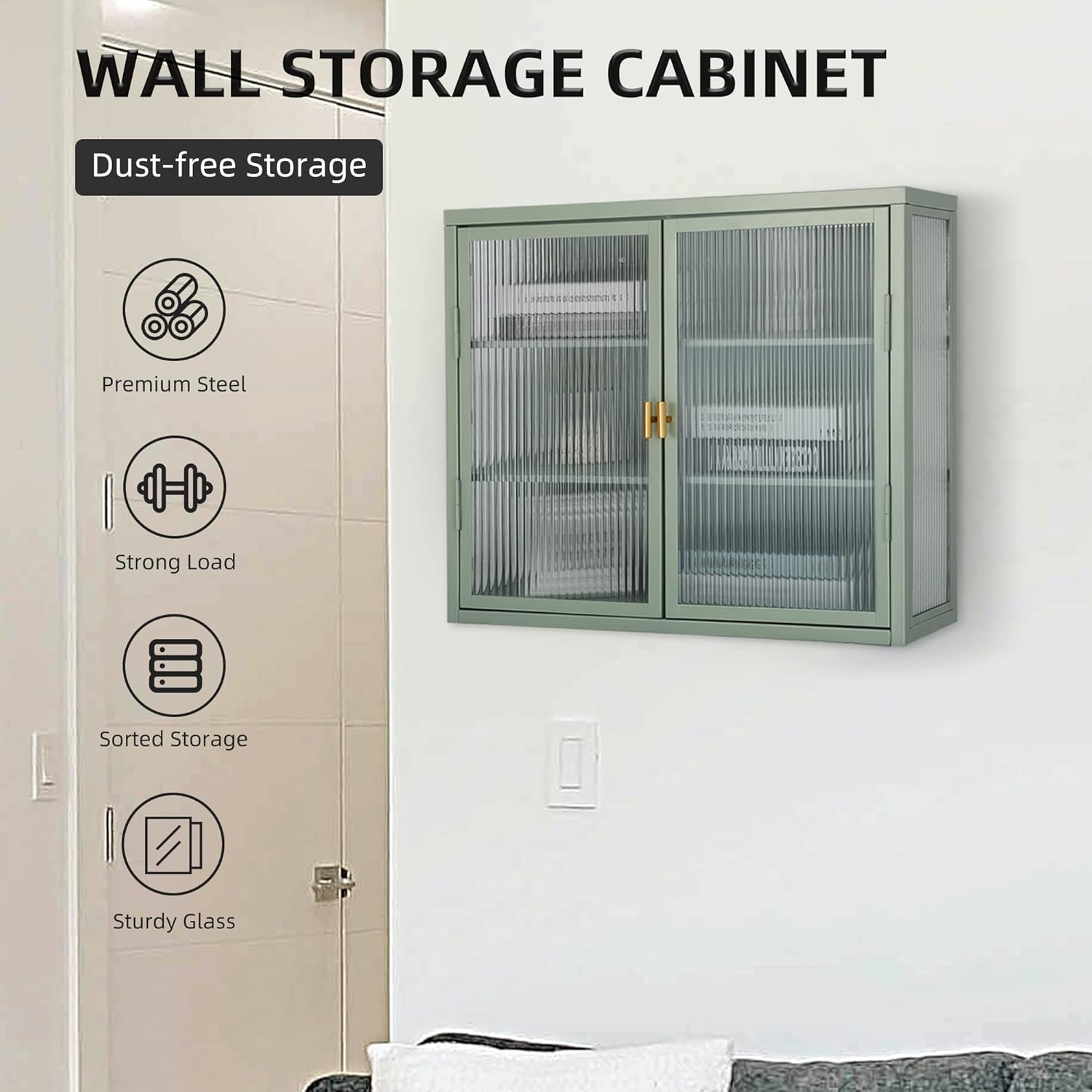 Tidyard Wall Cabinet with Detachable Shelves and Glass Door Steel Wall Mounted Storage Cabinet Mint Green for Living Room, Entryway, Bathroom, Kitchen, Home Office Furniture 27.6 x 9.1 x23.6 Inches