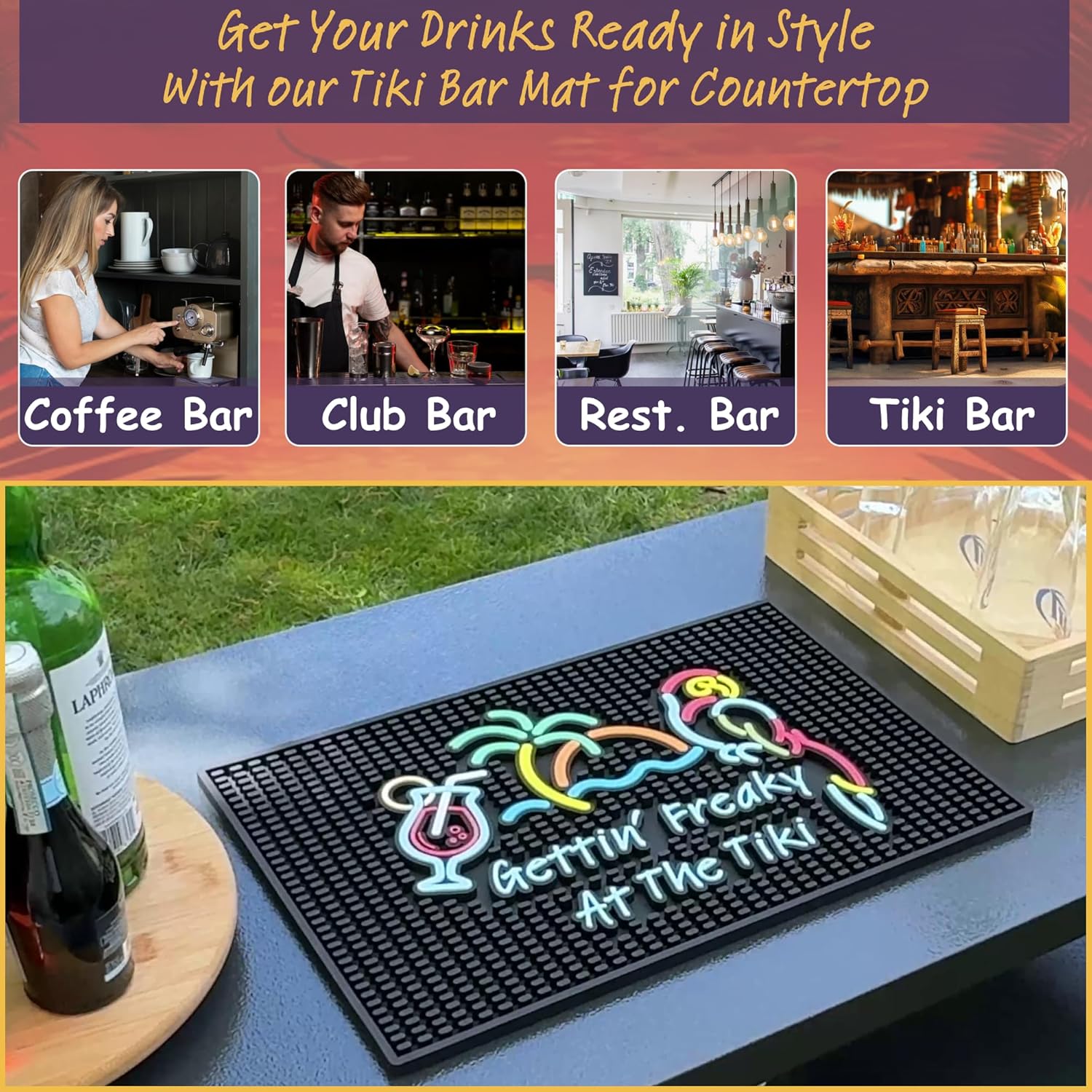 Tiki Bar Mats for Countertop – Perfect Bar Sign Gettin Freaky at The Tiki 18×12 in – Kitchen Counter Decor Tiki Bar Accessories, Tiki Bar for Outside Patio Rubber Bar Mats, Mats for Bartending