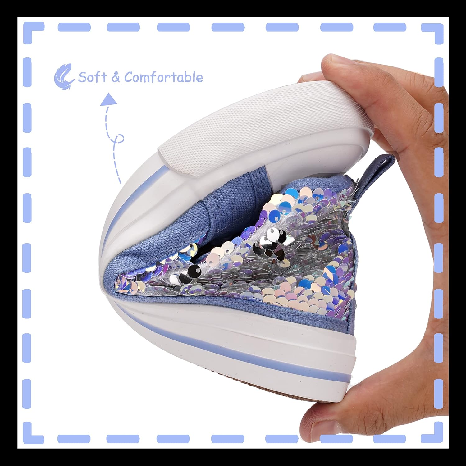Rubber soleLightweight and BreathableSparkle Color Change Flipping SequinsPadded Tongue for Added Support and ComfortAdjustable Hook and Loop Straps with No Lace DesignExtra Soft Insole Provides Feet Room to Move and Grow