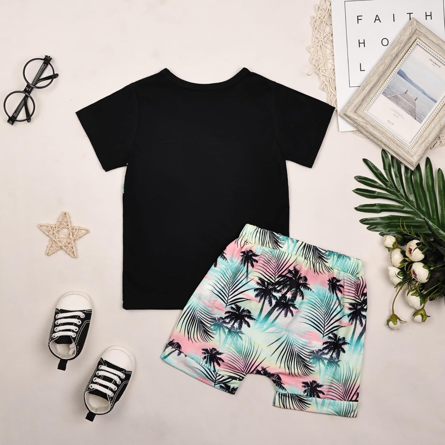 Toddler Baby Boy Clothes Summer Holiday Style Outfits Short Sleeve Top T-Shirt & Pocket Pant Set 12 Months-4 Years old