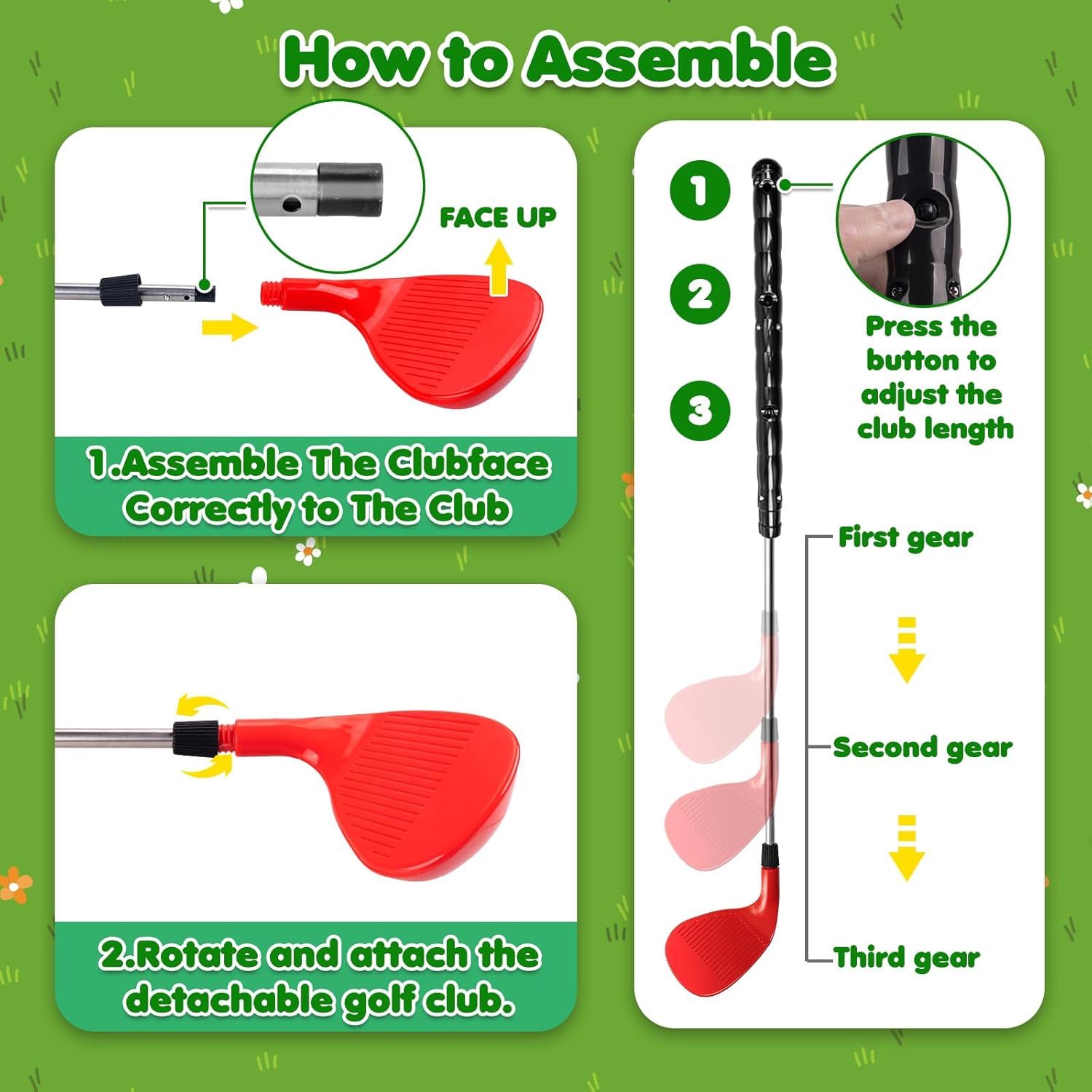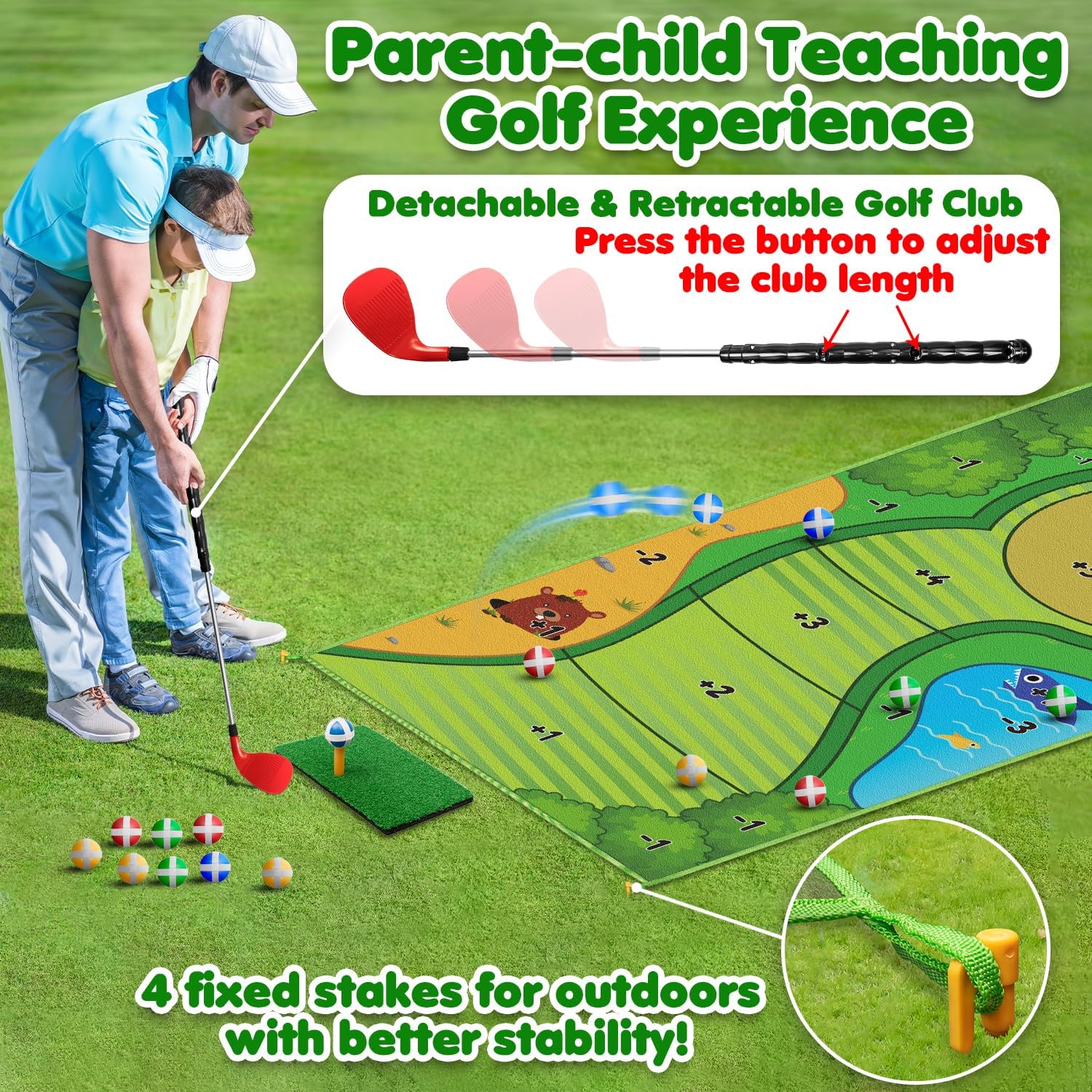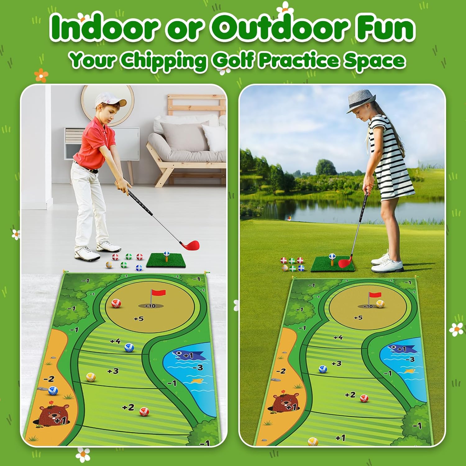 Toddler Golf Club Set with Chipping Golf Game Mat,Indoor Outdoor Backyard Stick Chip Play Equipment Games Gift Toys for 6 7 8 9 10 11 12 Year Old Boys Girls Kids Adult,Birthday Gifts