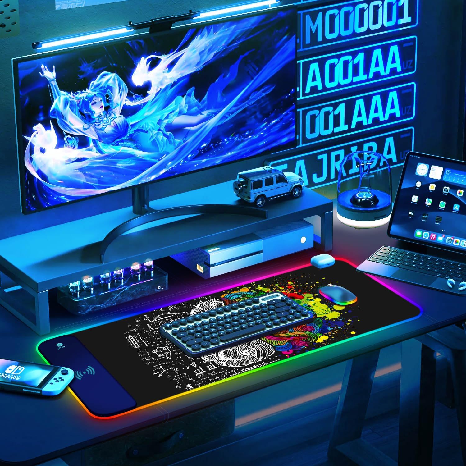 ToLuLu RGB Gaming Wireless Charging Mouse Pad, 7.5/10/15W 10 Light Modes LED Mouse Pad Computer Keyboard Mat Mousepad, 800x300x4MM Extended Large Desk Mat for Gaming, MacBook, Laptop, PC, Human Brain