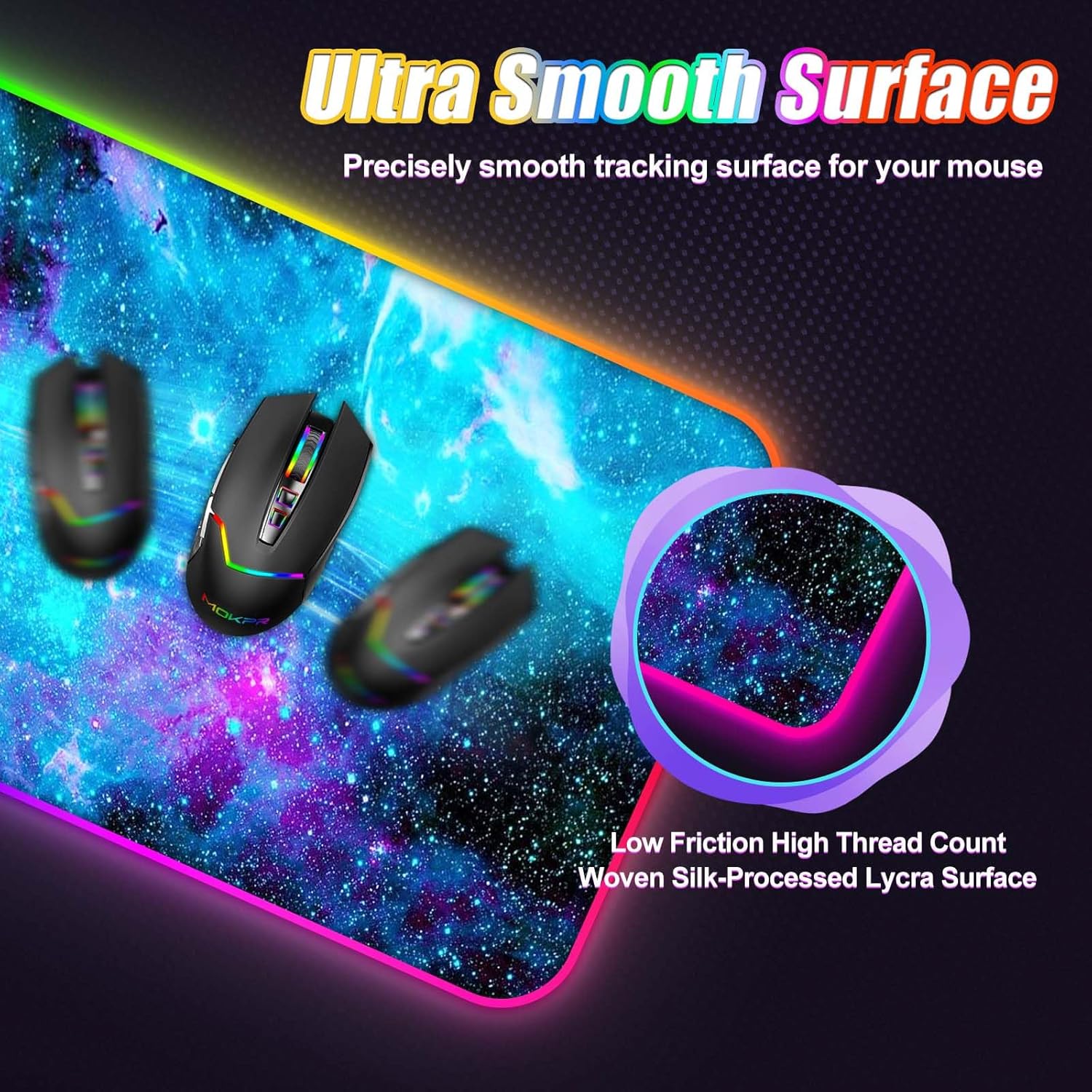 ToLuLu Wireless Charging RGB Gaming Mouse Pad, 15W LED Mouse Mat with 30W Charger, 14 Light Modes Large Mousepad with Wrist Support, Non-Slip Rubber Base Desk Mat Computer Keyboard Pad, Galaxy Nebula