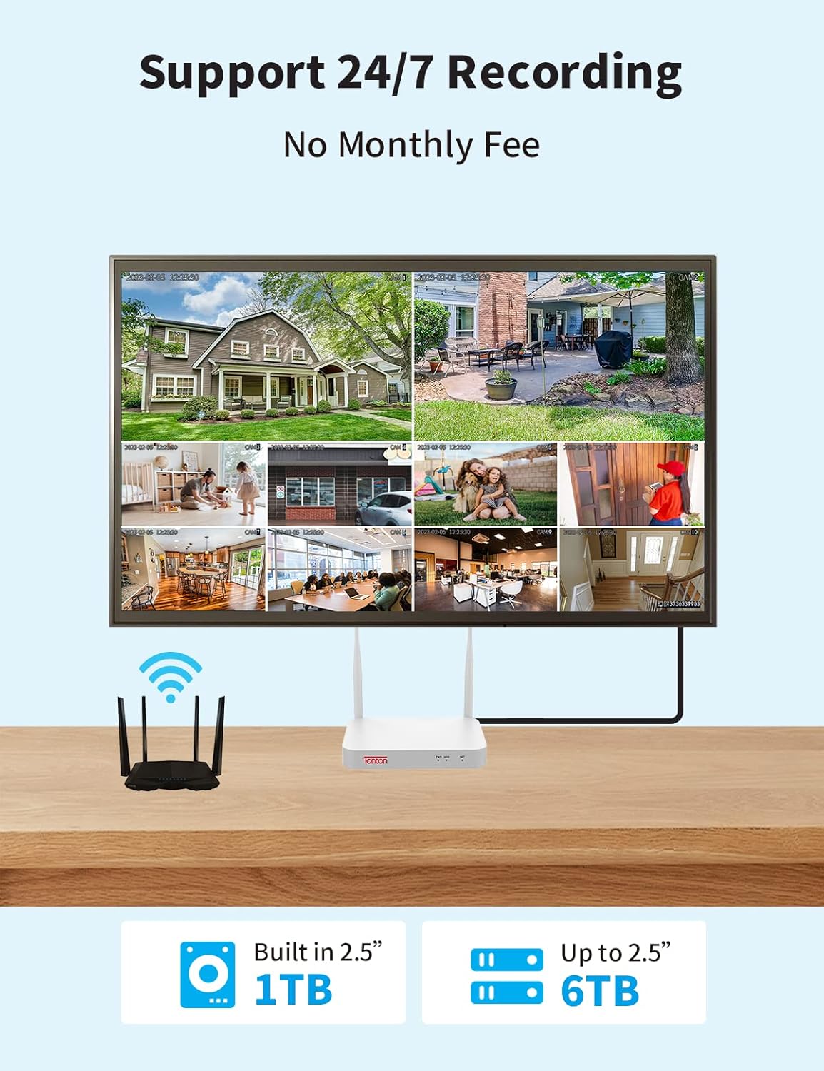 Supports 10 Cameras, Supports up to 6TB HDD, Work with Tonton Wireless Camera (1TB HDD Included)