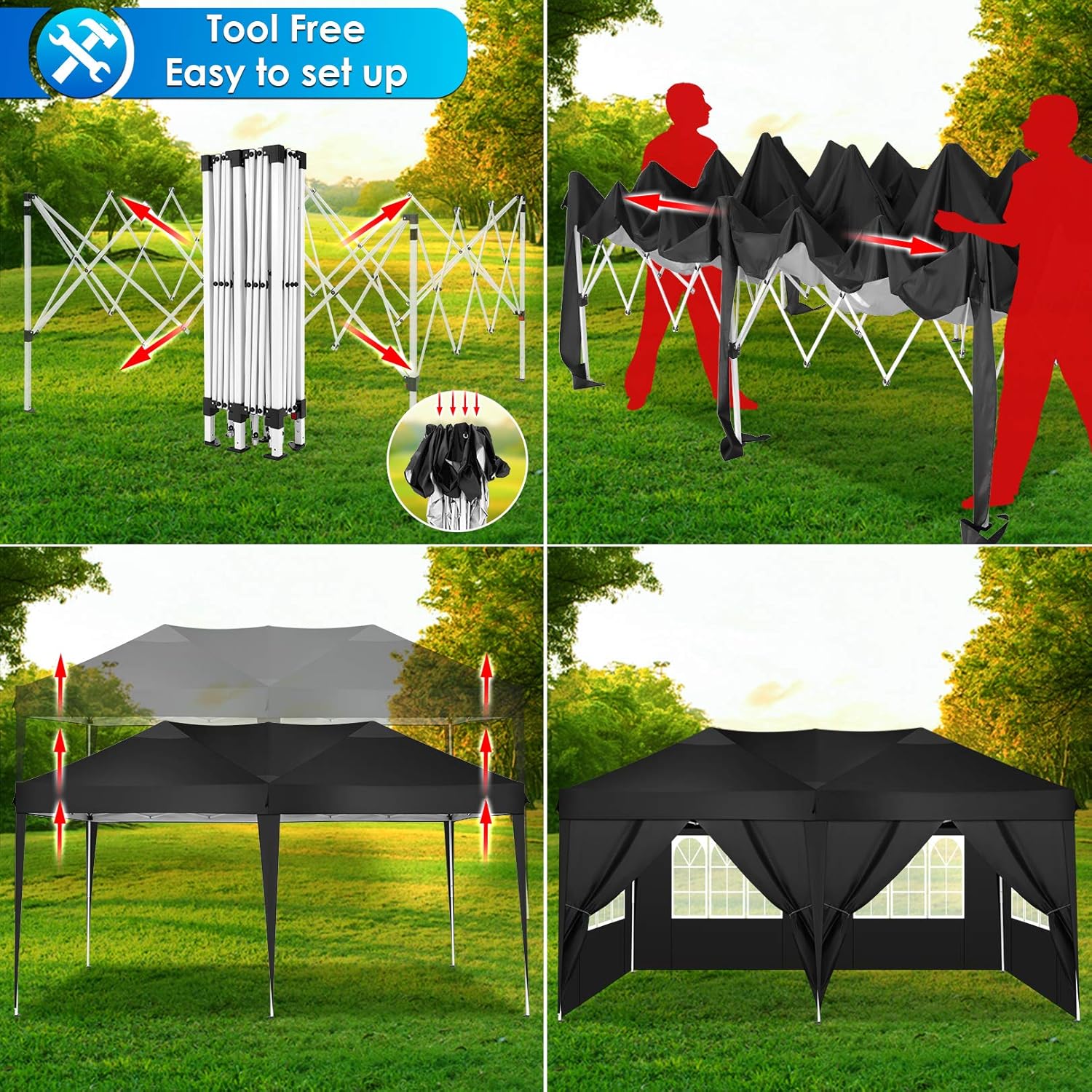 TOOLUCK 10×20 Pop Up Canopy Tent with 6 Sidewalls Waterproof Outdoor Party Tent Ez Up Canopy Tents for Parties Camping Commercial Event Gazebo Portable Tent for Backyard Wedding, Black