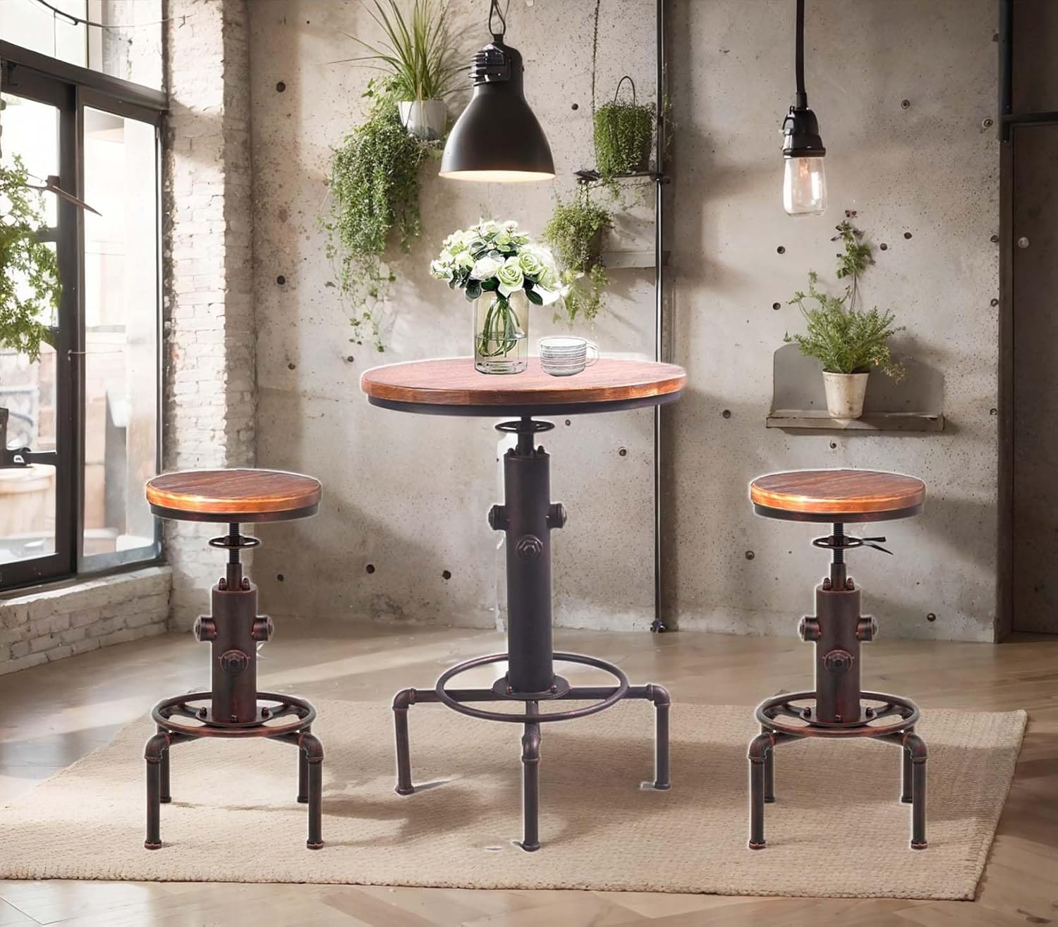 STURDY & DURABLE – Solid heavy duty pipe come with solid cast iron connector full weld by welding robot make it to a strong durable stool , feel easy to seat on it . weight capacity 200kg .With footrest to put your feet ,looks rustic but comfortable &anti scratch