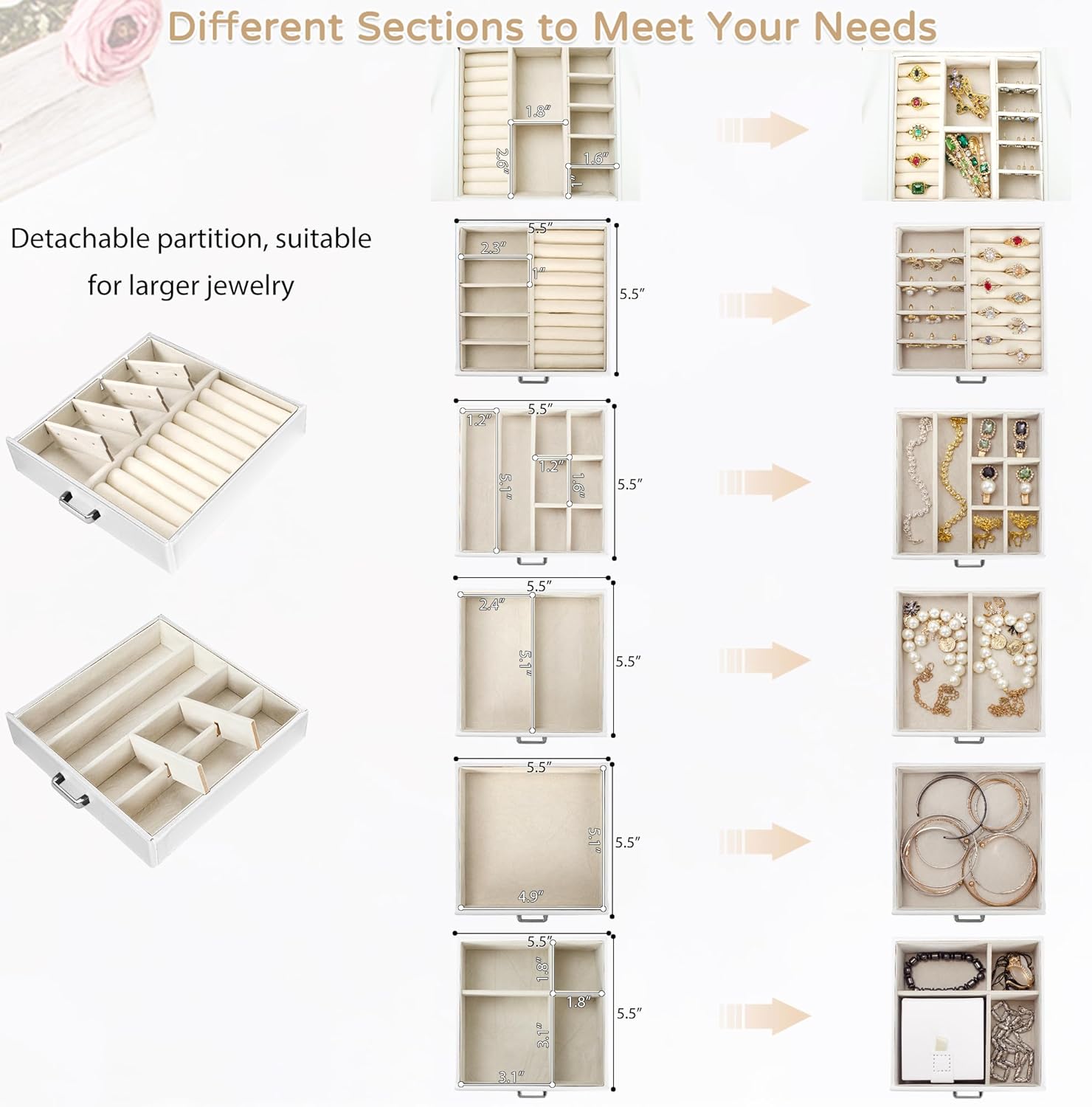 Some drawer compartments are detachable for larger jewellery, allowing you to organize them in a variety of ways.
