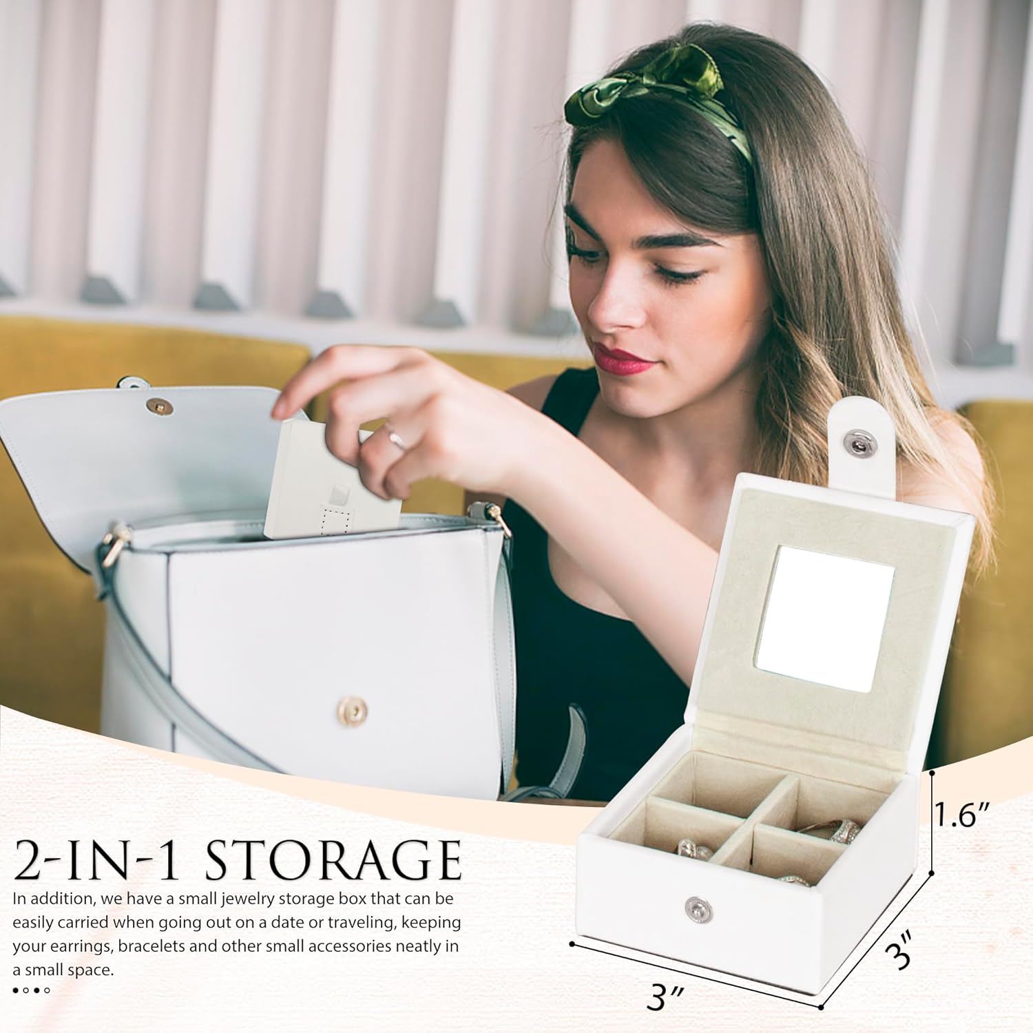 📿【2 in 1 Storage】: Comes with a small jewelry box, which can be easily carried when you go out for a date or travel, and place your earrings, bracelets and other small accessories neatly in a small space. There are 8 rows of hooks and 2 pockets on both sides of the jewelry box, you can choose to hang your necklace on it without being entangled, making it more convenient for you to use. Some drawer compartments are detachable for larger jewellery, allowing you to organize them in a variety of wa