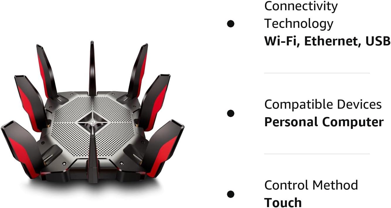 TP-Link WiFi 6 Gaming Router – Tri Band Wireless Internet Router, High-Speed ax Router, Smart VPN Router for a Large Home, 2.5G WAN, 8 Gigabit LAN Ports (Archer AX10000) (Renewed), Black and Red