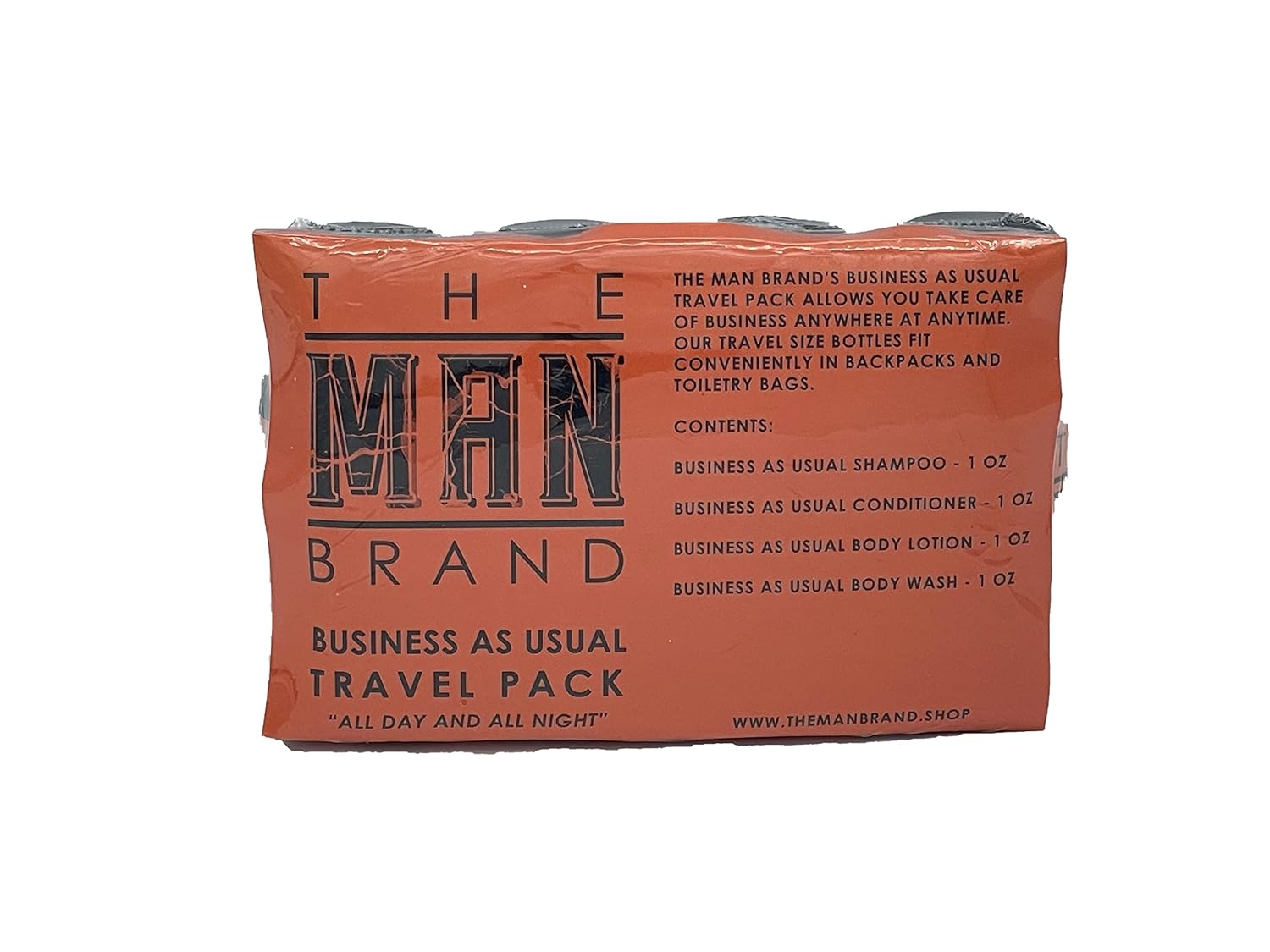 The Man Brand’s travel pack for men comes with everything you need to take with you on the road. You can now take The Man Brand with you everywhere you go. Our travel pack contains one ounce (1 oz) bottles of our shea butter and vitamin E shampoo, black castor oil, shea butter, and vitamin E conditioner, organic aloe vera and shea butter body lotion, and shea butter body wash. Using these products together gives you the full “Man Brand” experience. Perfect for dads, grandpas, brothers, uncles, husbands, and any other deserving man in your life. The ideal gift for men on Father’s Day, Birthdays, Holidays, and every day. The travel size bottles compliment our on the go solid cologne by The Man Brand.