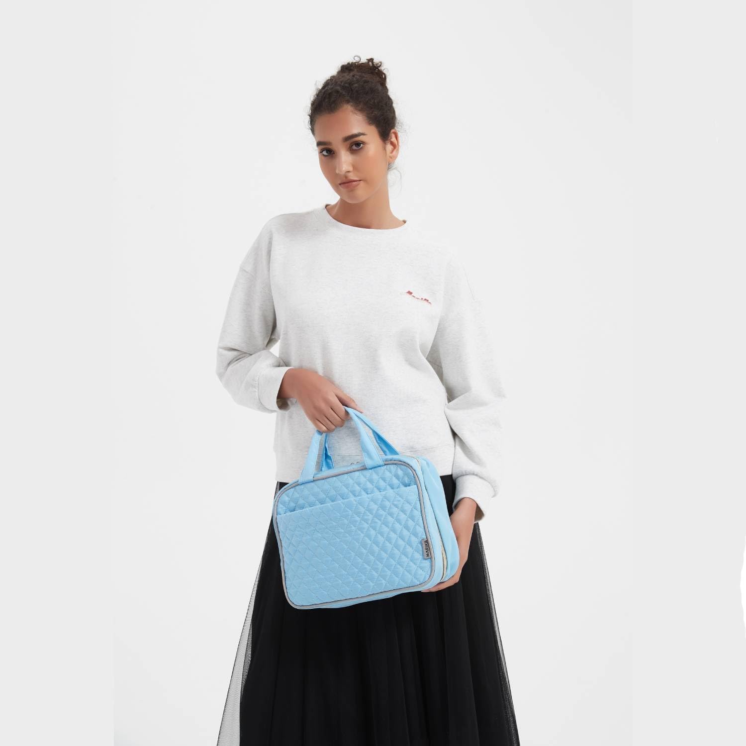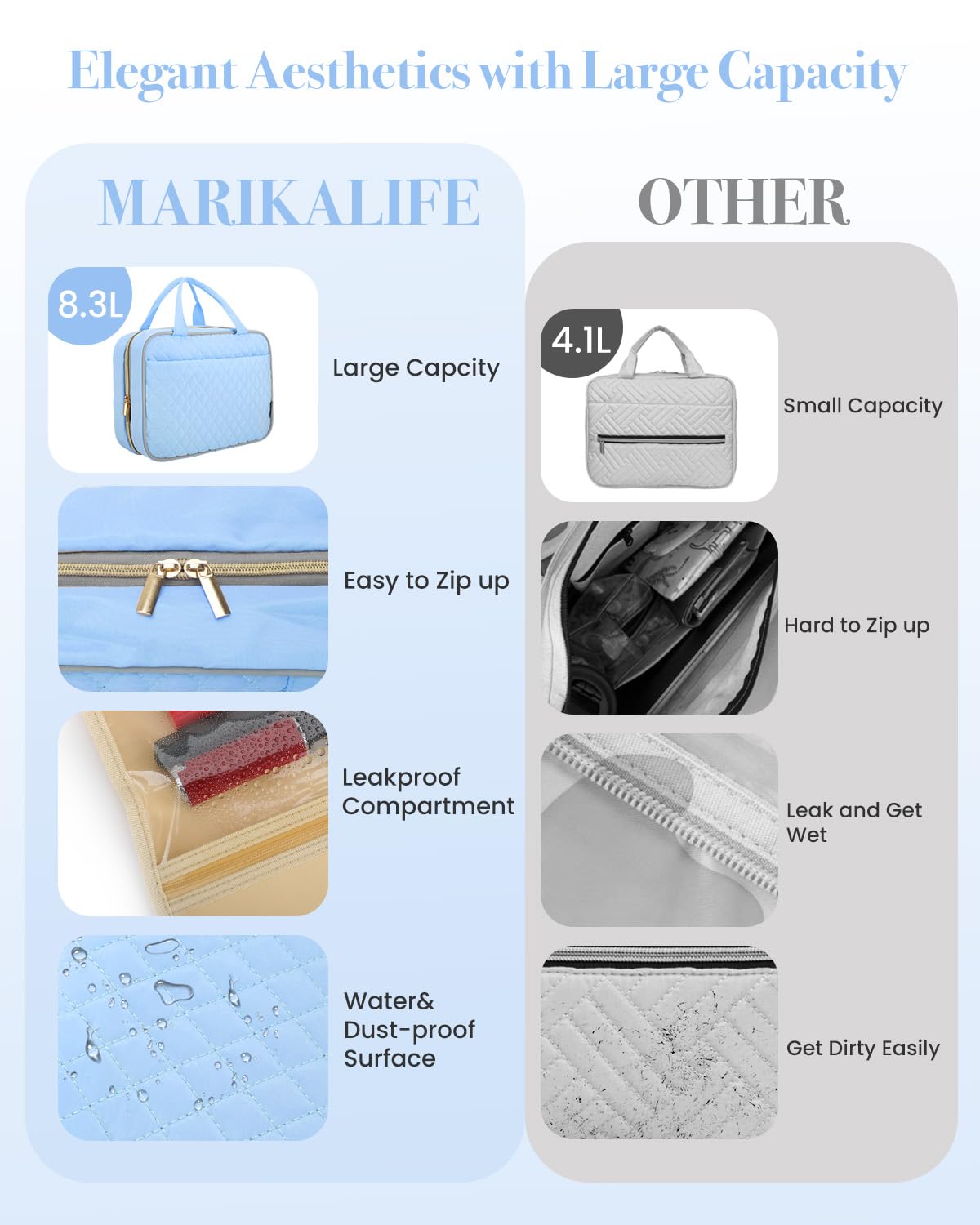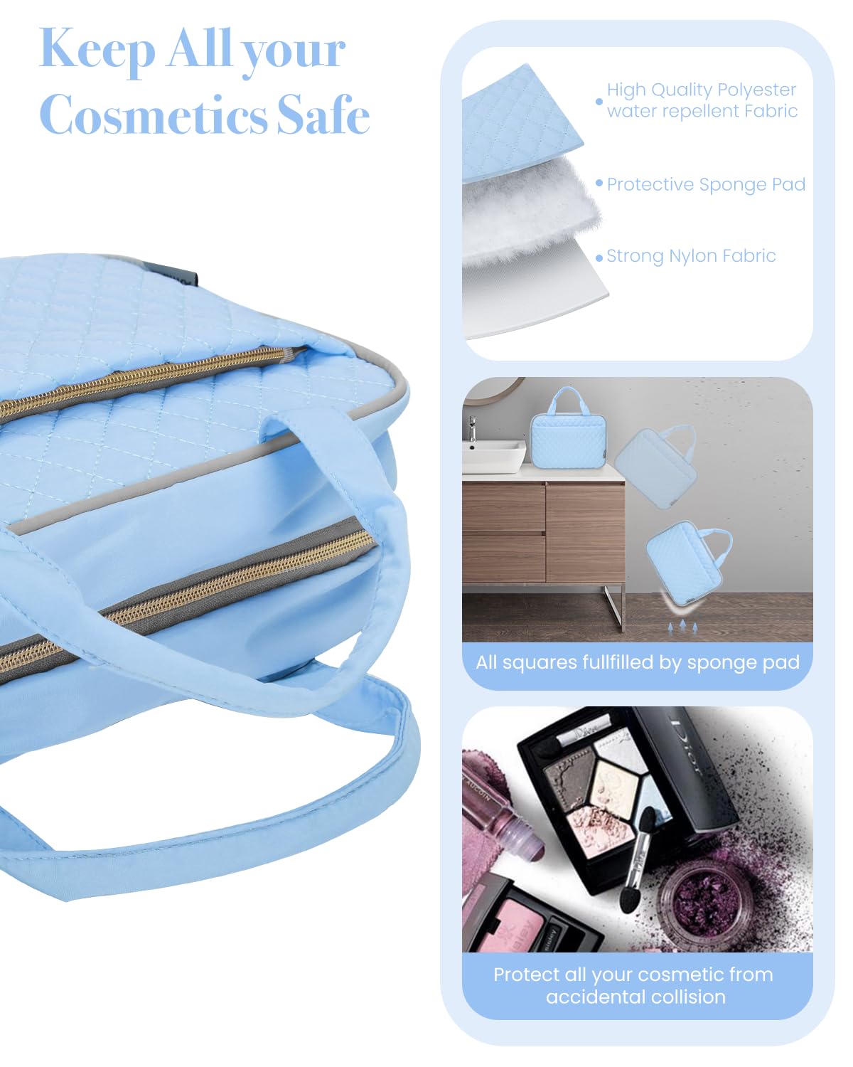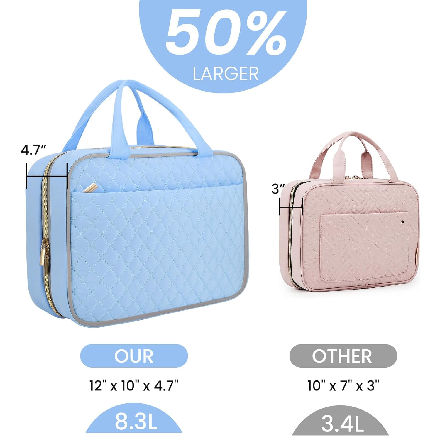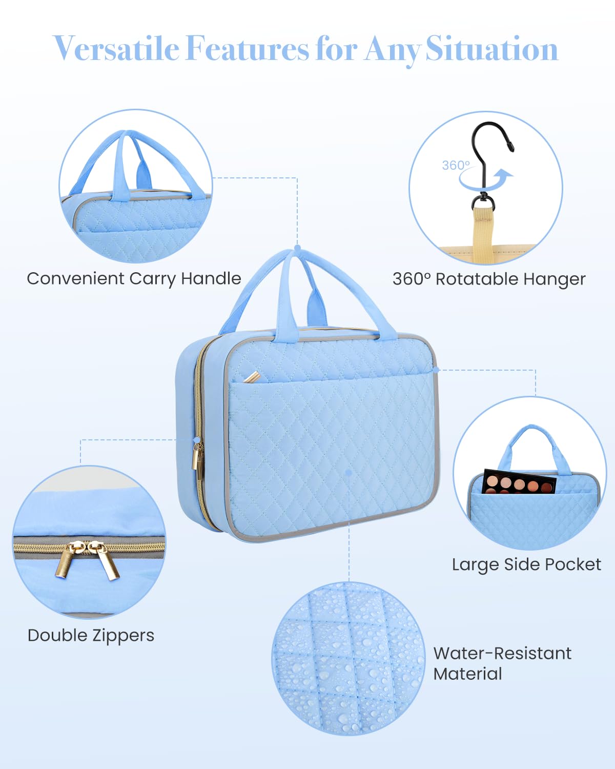 Travel Toiletry Bag, Hanging Toiletry Bag for Women, Cute Makeup Cosmetic Case Organizer for Accessories, Full Sized Toiletries-Baby Blue