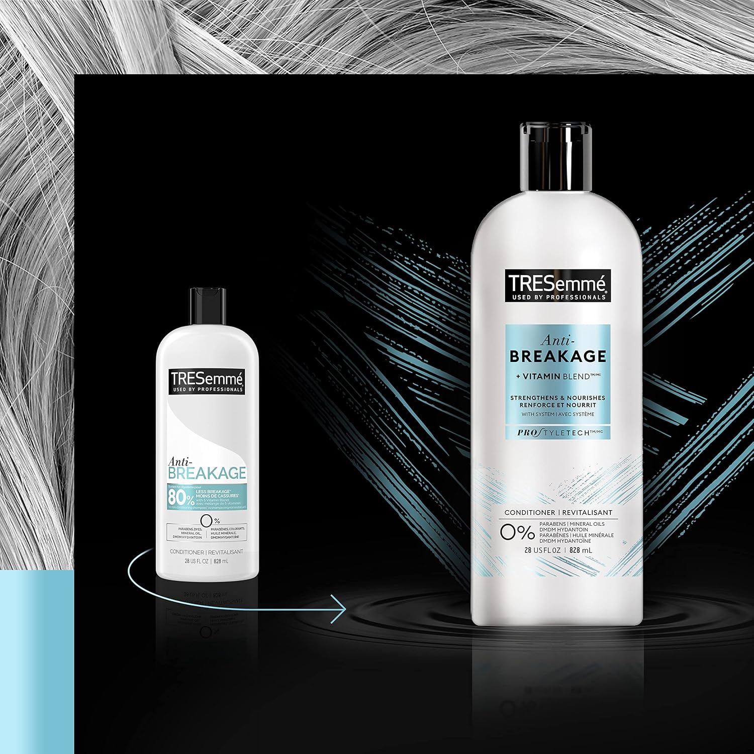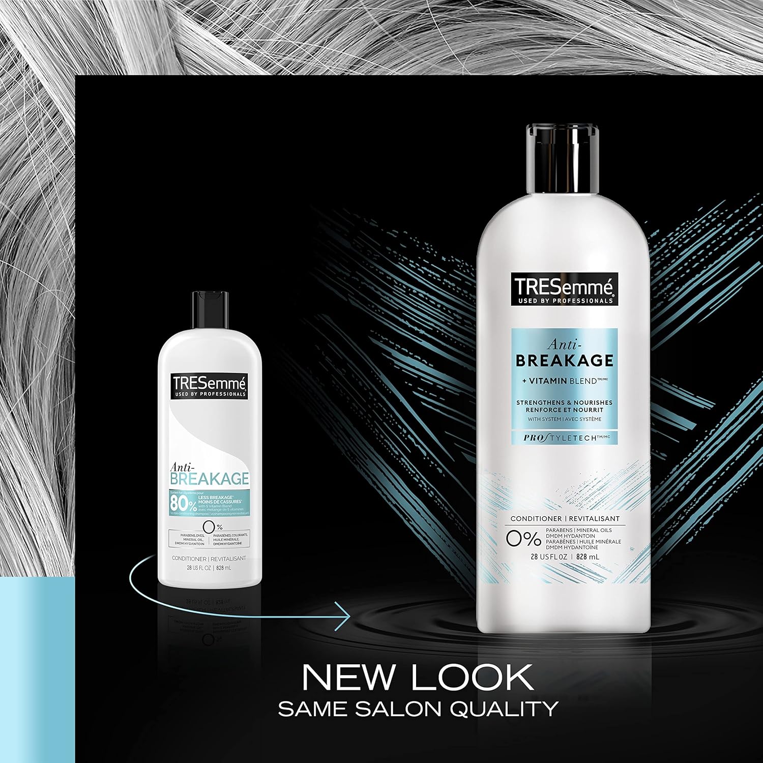 WITH VITAMIN BLEND; TRESemmé Anti-Breakage conditioner helps restore and revitalize distressed and weak hair, while detangling to leave hair salon-smooth