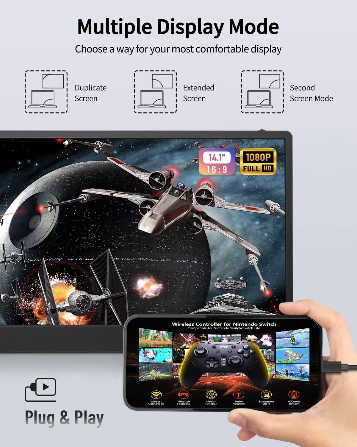 1. Macsecor S2 portable external monitor provides Multiple Display Modes[copy mode/extension mode/second screen mode],In extended mode, you can easily manage multiple applications and various documents in a neat workbench. 2. Enjoy a traditional viewing experience in Landscape Mode or switch to Portrait Mode for reading documents or coding.