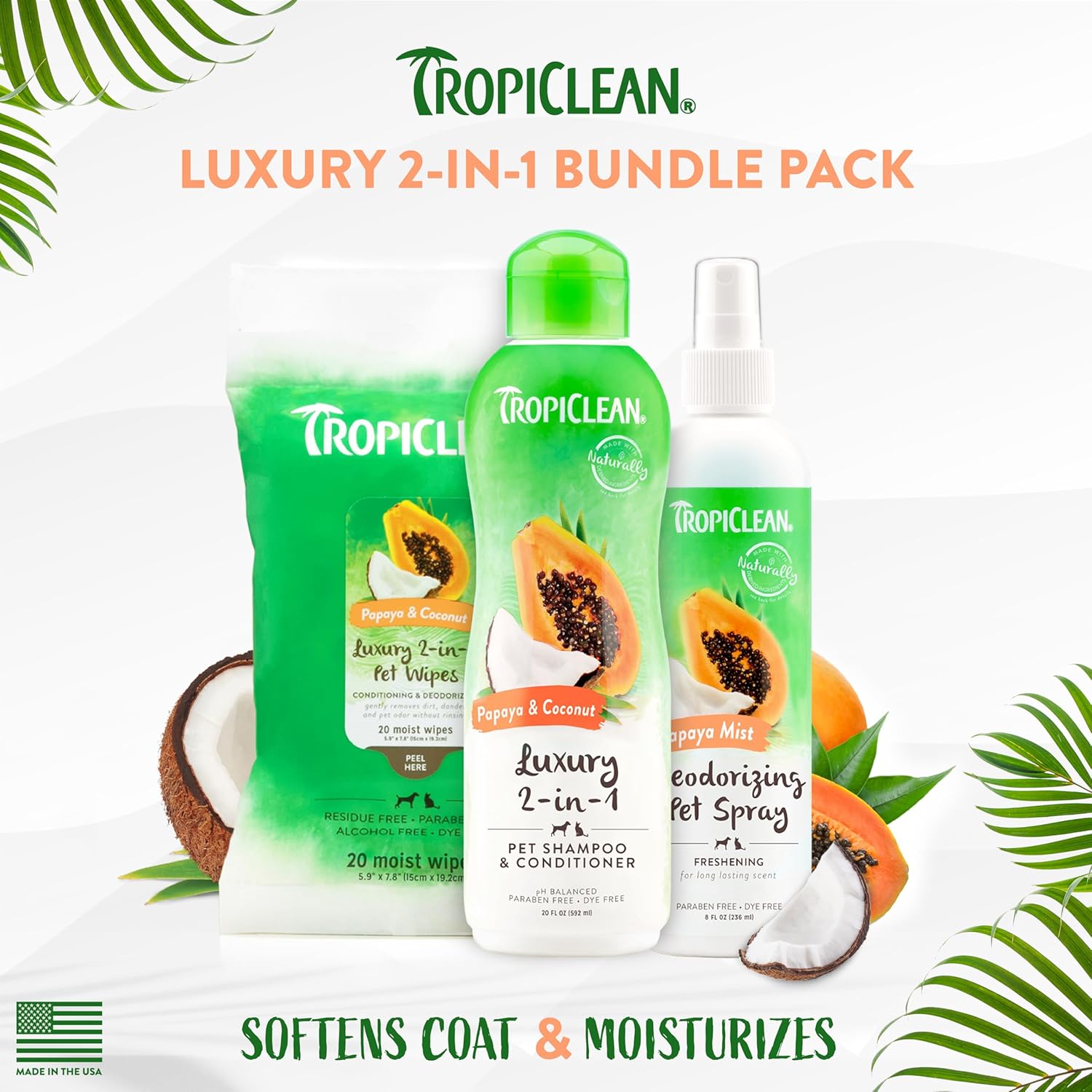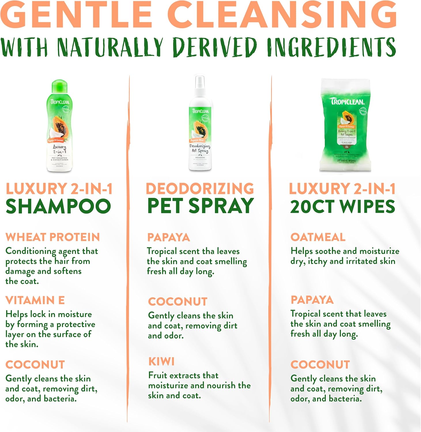 TropiClean Papaya Grooming Kit for Dogs| Natural Pet Products Derived from Natural Ingredients | Safe for Cats | Made in The USA | 3 Piece Set