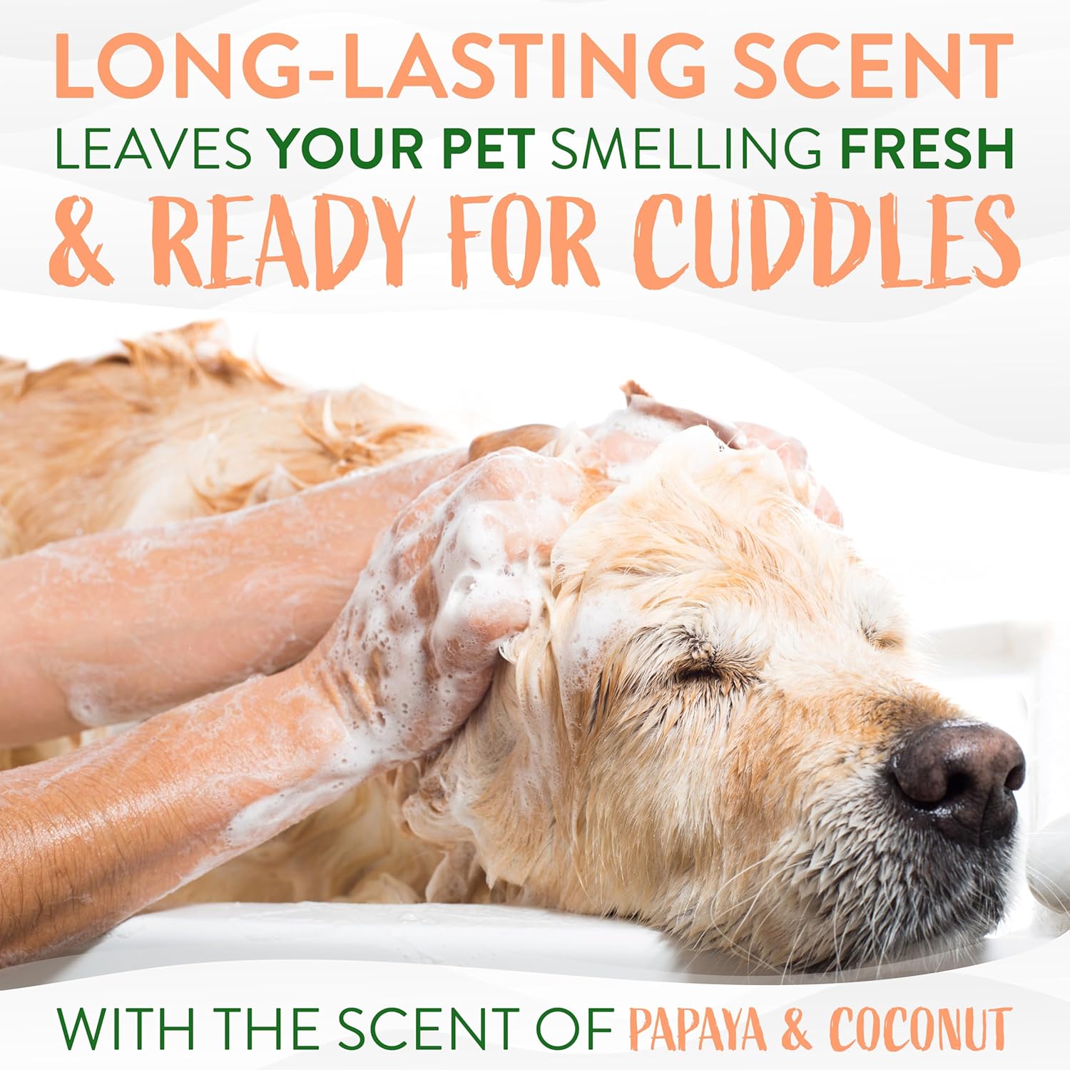 2-in-1 Papaya Shampoo & Conditioner – Treat your pet! Moisturizing dog shampoo and cat shampoo infused with papaya and coconut controls odor, hydrates skin, and leaves fur silky soft.