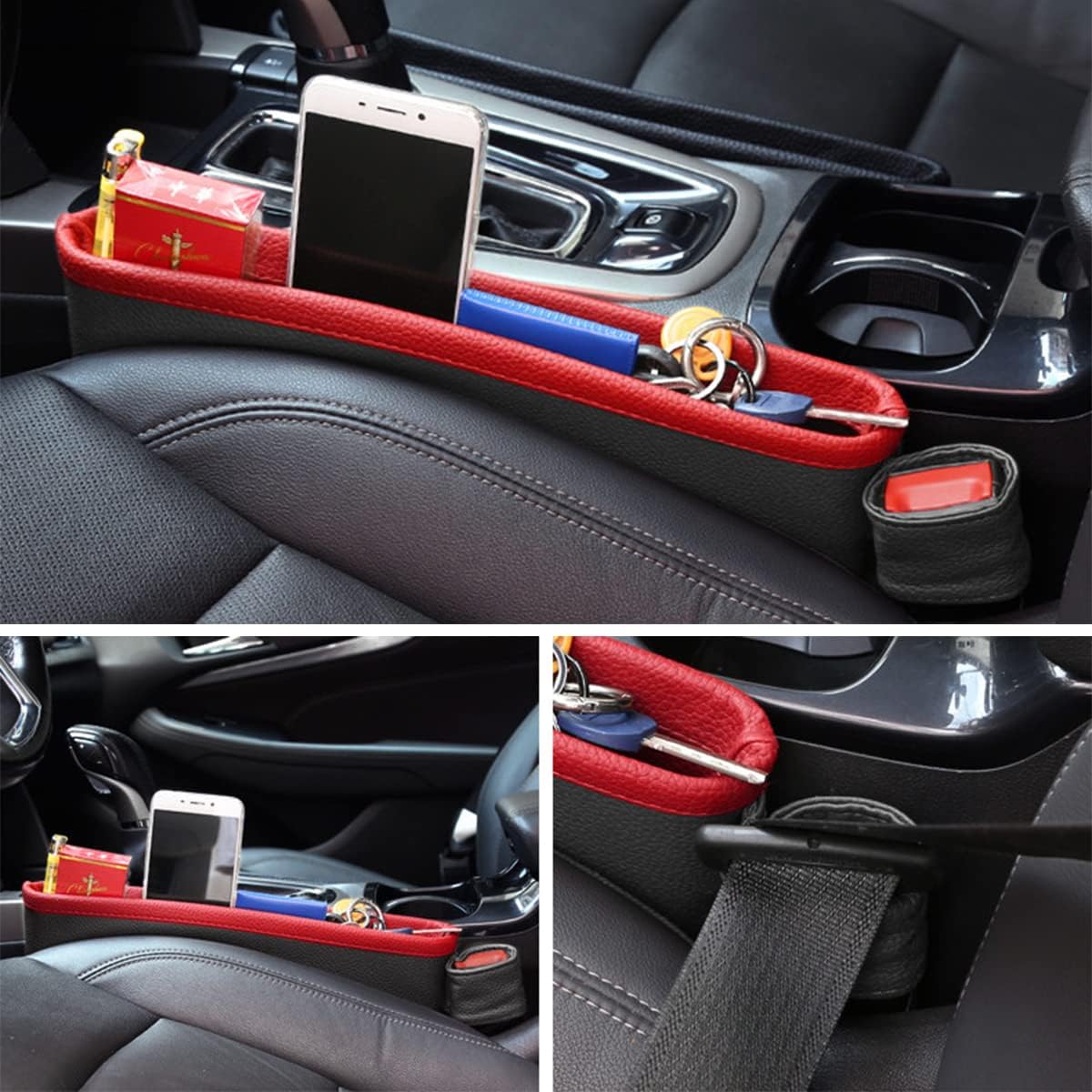 Tumecos Car Seat Pockets PU Leather Car Console Side Organizer Seat Catcher Holders Compatible with Phone Key Wallet Phone Sunglasses 2 Pack (Black+Red)