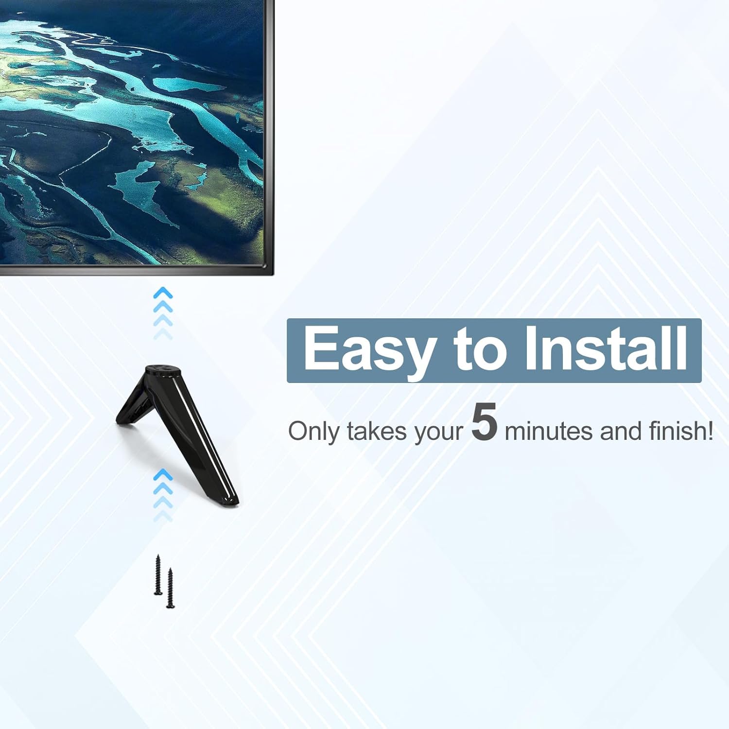 —- Easy To Install—- TV Legs for TCL desktop TV stand is designed to easy to install for everyone, just takes about 5 minutes to install, so easy!