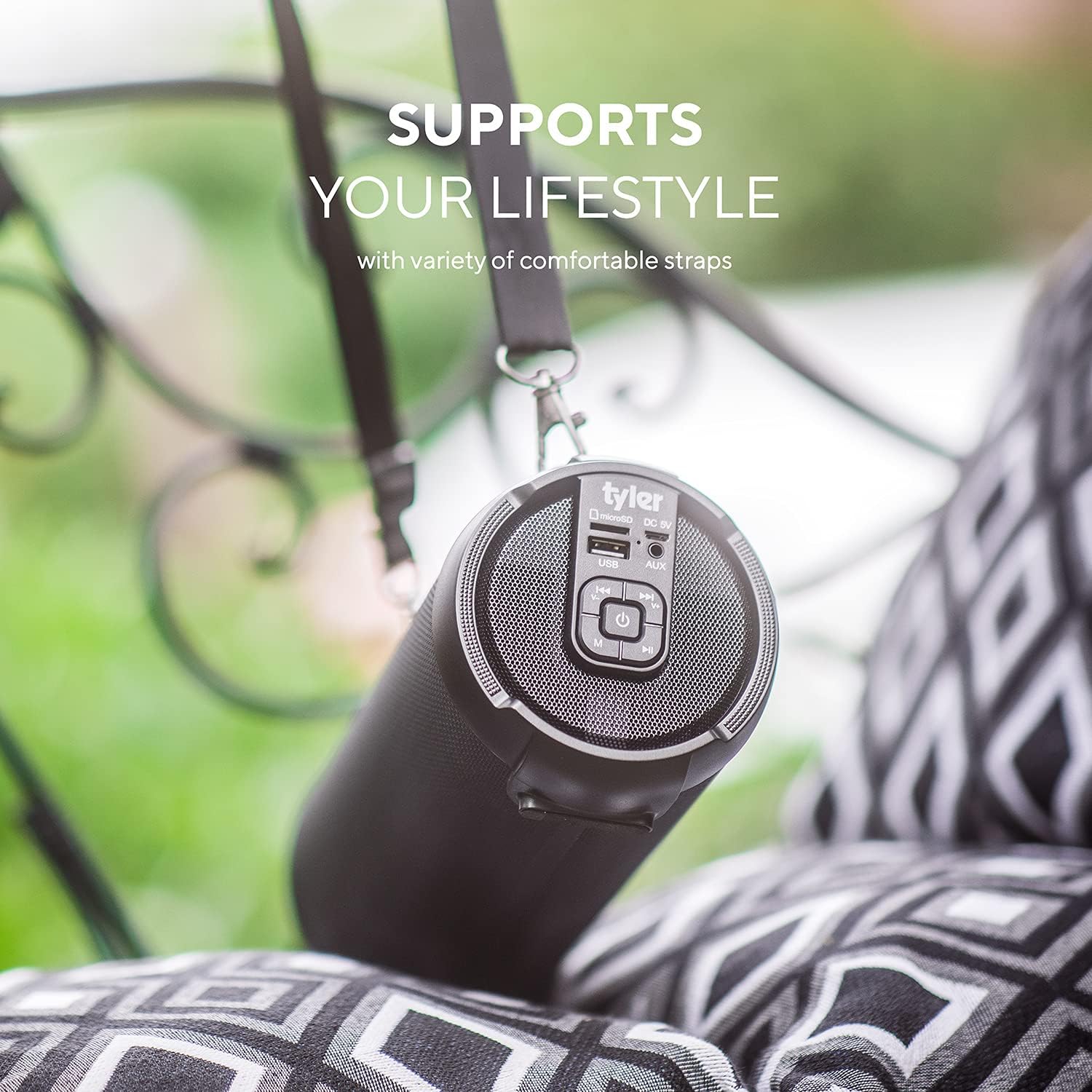 Tyler Wireless Bluetooth Speaker Water Resistant Long Range 300 watt Rechargeable Boombox USB MP3 Micro SD AUX Inputs Fm Radio Sound & Bass Carry Strap Lightweight for Home Outdoor Stereo