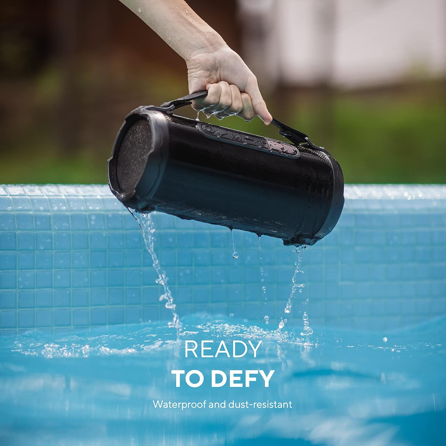 WATER RESISTANT: Take it out by the pool or use it as a shower speaker. We had liquids in mind and of course the kids. Not designed for water submerging but can withstand light water splashes. Go the beach, rivers, dance in light rain, we go your covered!