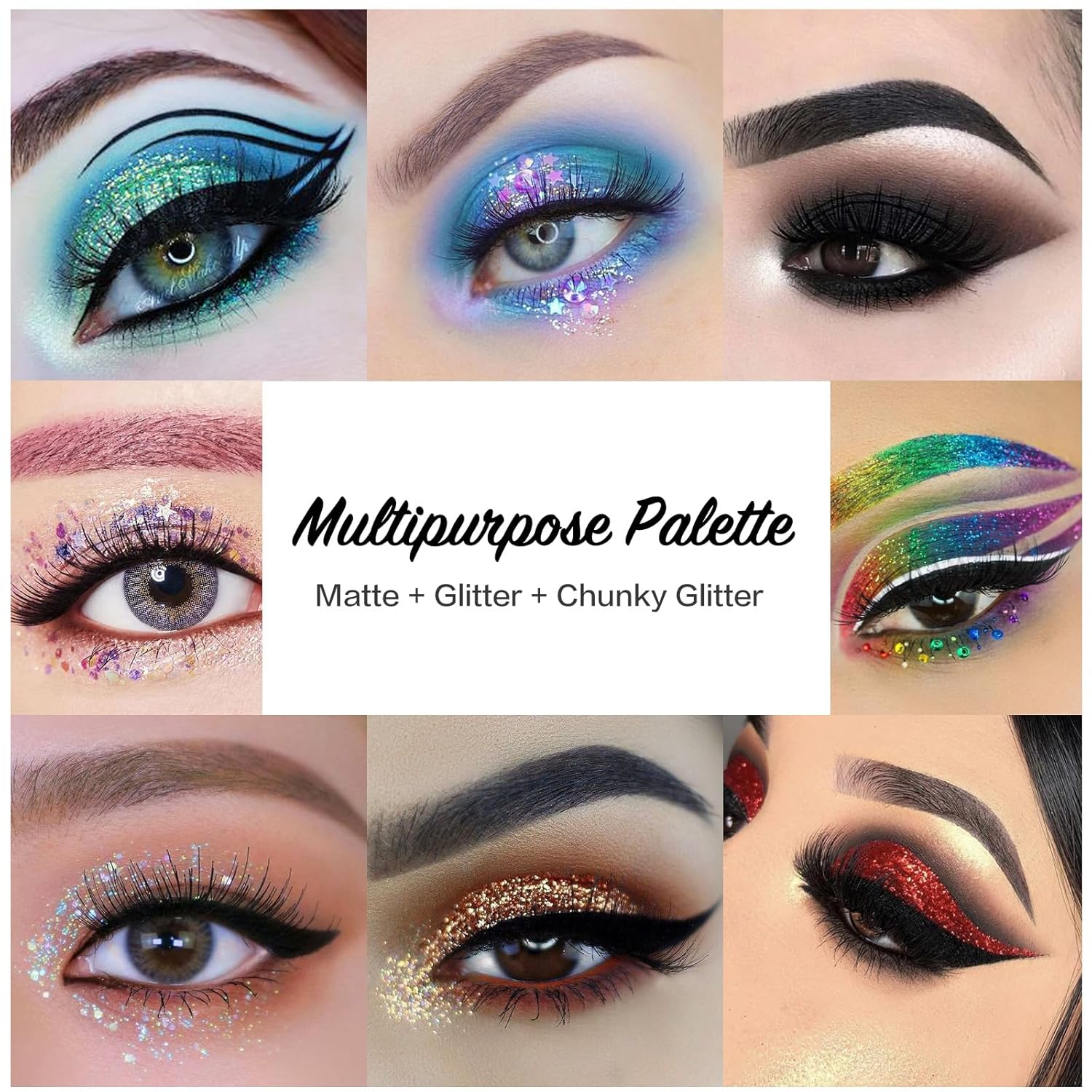For optimal results with this versatile palette, it’s recommended to use a glitter primer or glue (note: the 6 chunky glitter shades don’t require primer). These vibrant glitter eyeshadows are both waterproof and long-lasting. Beyond the eyes, this palette’s shades can be used for nail, body, and hair art. However, be cautious with the small sequins; avoid getting them in your eyes or swallowing them.