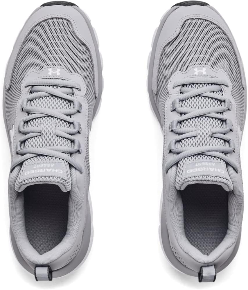 These running shoes are built to help anyone go faster-Charged Cushioning® helps protect against impact, leather overlays add durable stability, and a mesh upper keeps your feet cool for miles.. Lightweight mesh upper with 3-color digital print delivers complete breathability. Durable leather overlays for stability & that locks in your midfoot. EVA sockliner provides soft, step-in comfort. Charged Cushioning® midsole uses compression molded foam for ultimate responsiveness & durability. Solid rubber outsole covers high impact zones for greater durability with less weight. Offset: 10mm. NEUTRAL: For runners who need a balance of flexibility & cushioning. Lace type: Standard tie.