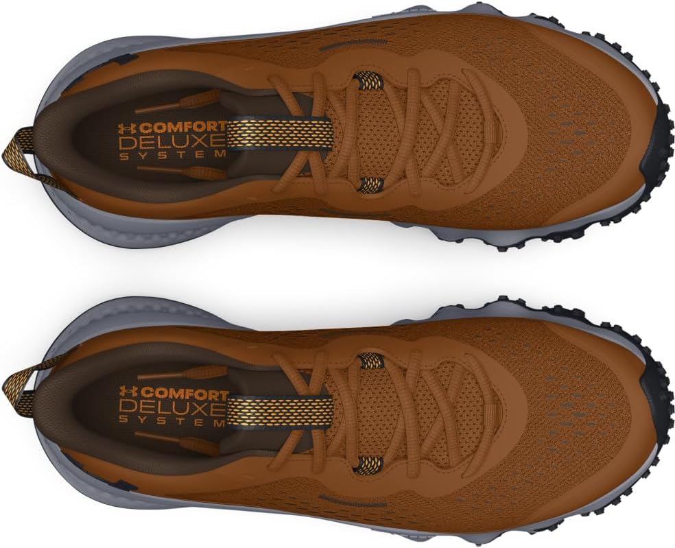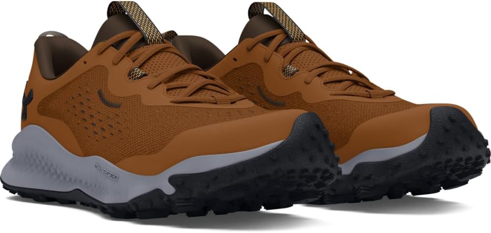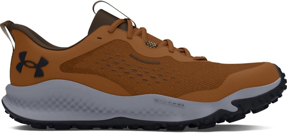 Engineered mesh upper is lightweight & breathable. PU overlays for added durability & protection in high-abrasion areas. Deluxe Comfort System sockliner molds to your foot for ultimate step-in comfort. Charged Cushioning midsole uses compression molded foam for ultimate responsiveness & durability. Durable rubber outsole with omni-directional trail lugs for ultimate traction. Outsole wraps up to form a toe bumper for added protection. Weight: 10.8 oz.. Lace type: Standard tie.
