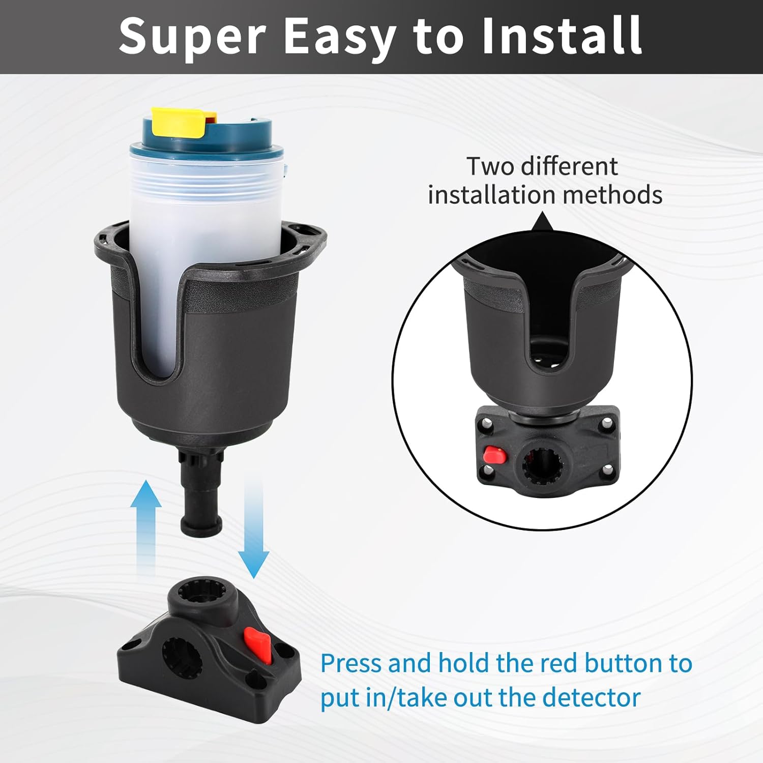 【Simple Installation】The base of the kayak drink holder can be easily installed on the side or top deck of the boat using four screws or tools for tightening. The red button facilitates effortless installation /removal of the base and pole bracket.